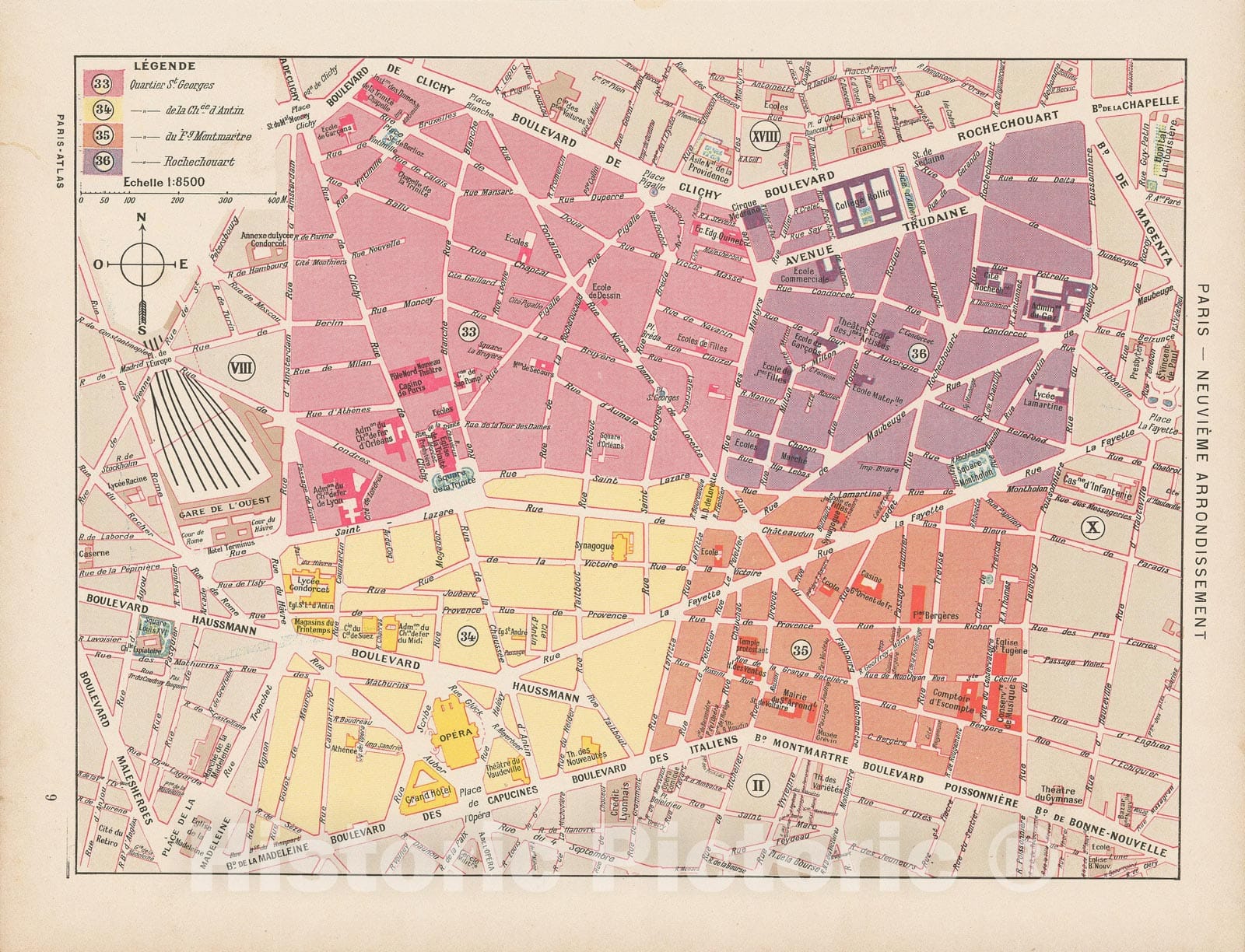 Historic Map : Europe, Paris 1900 9th Arrondissement , Vintage Wall Art