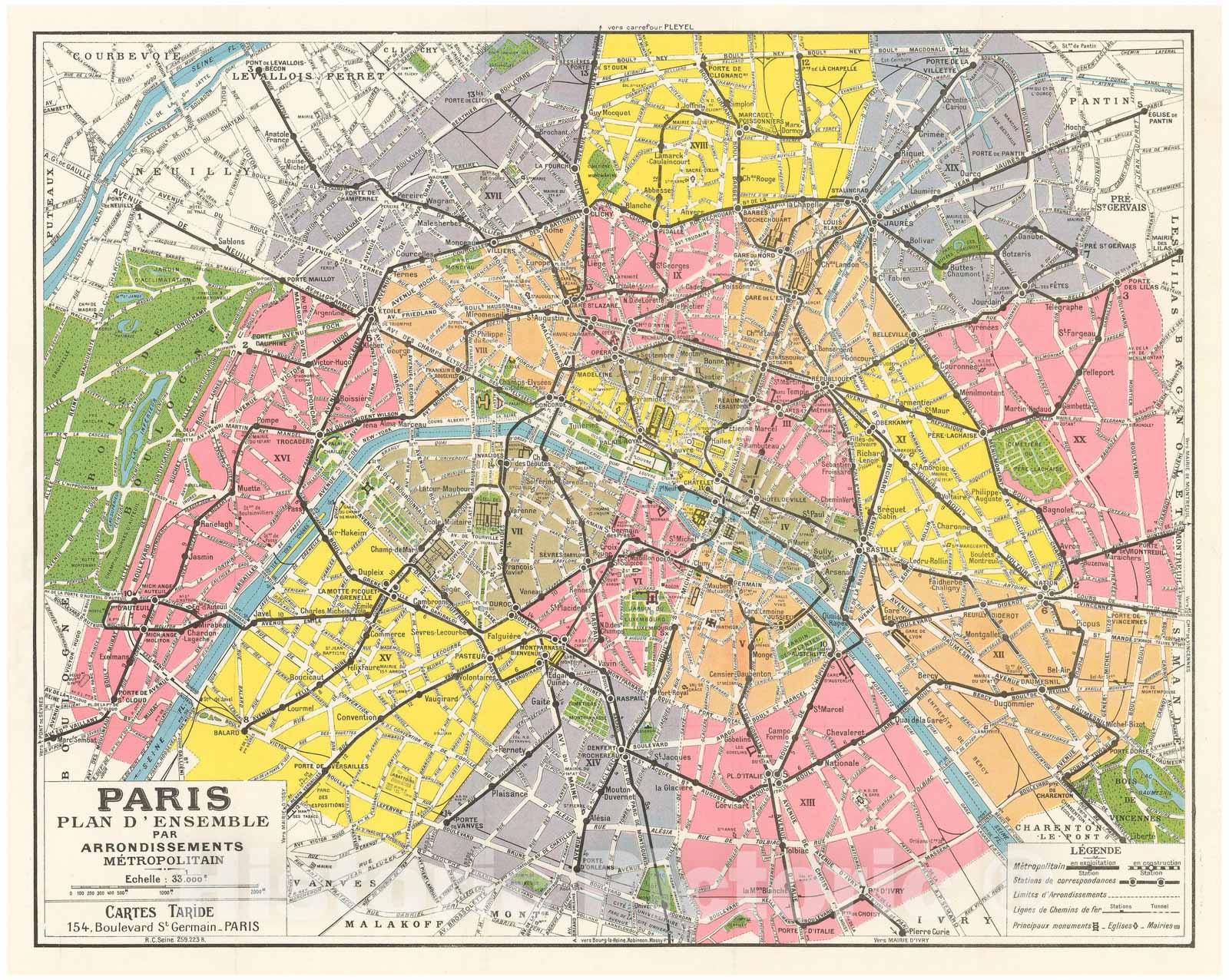 • Historic Map : Europe, Paris 1950 , Vintage Wall Art