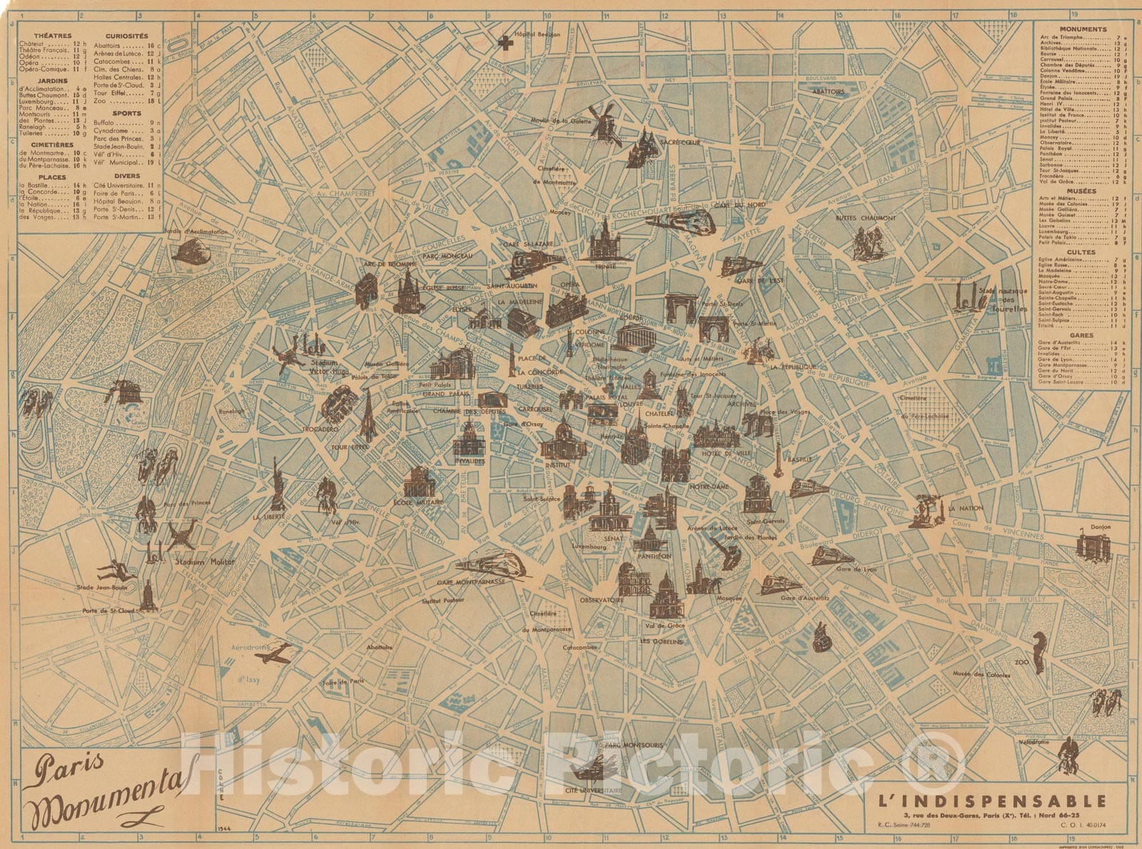 Historic Map : Europe, Paris Monumental 1944 , Vintage Wall Art