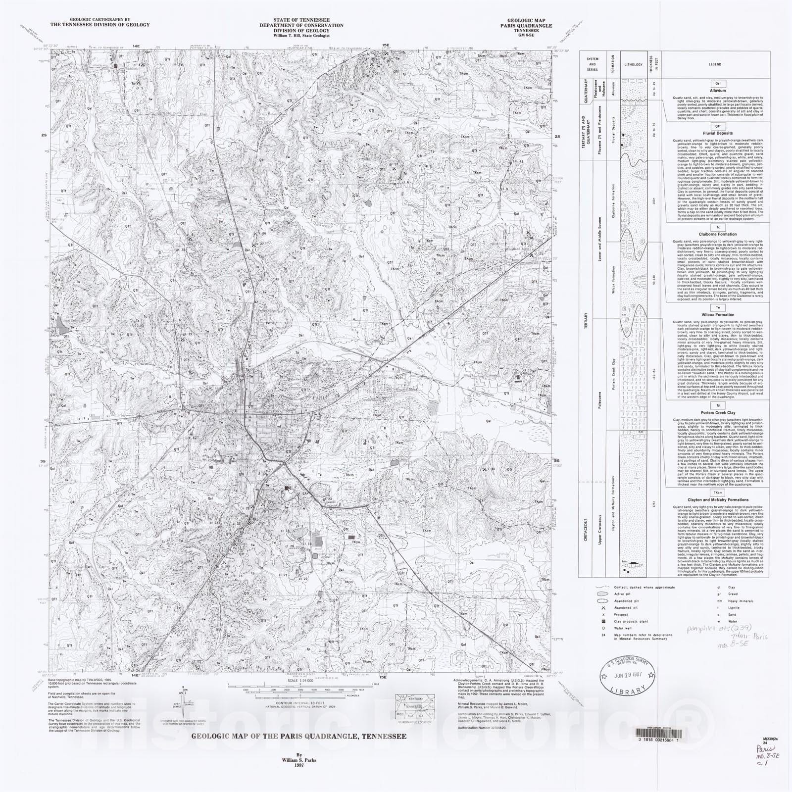 Map : Geologic Map and Mineral Resources Summary of the Paris Quadrangle, 1987 Cartography Wall Art :