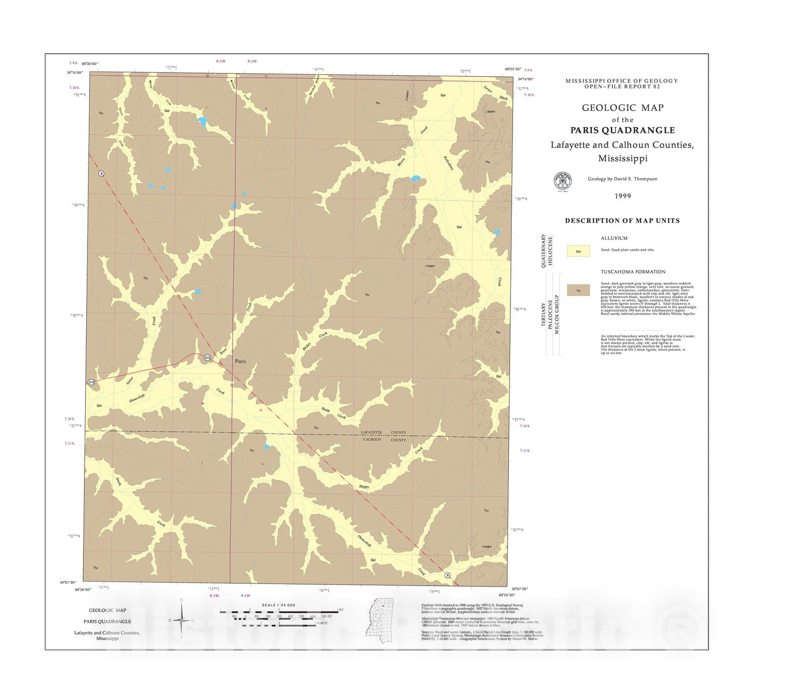 Geologic map of the Paris quadrangle, Lafayette and Calhoun Counties, Mississippi