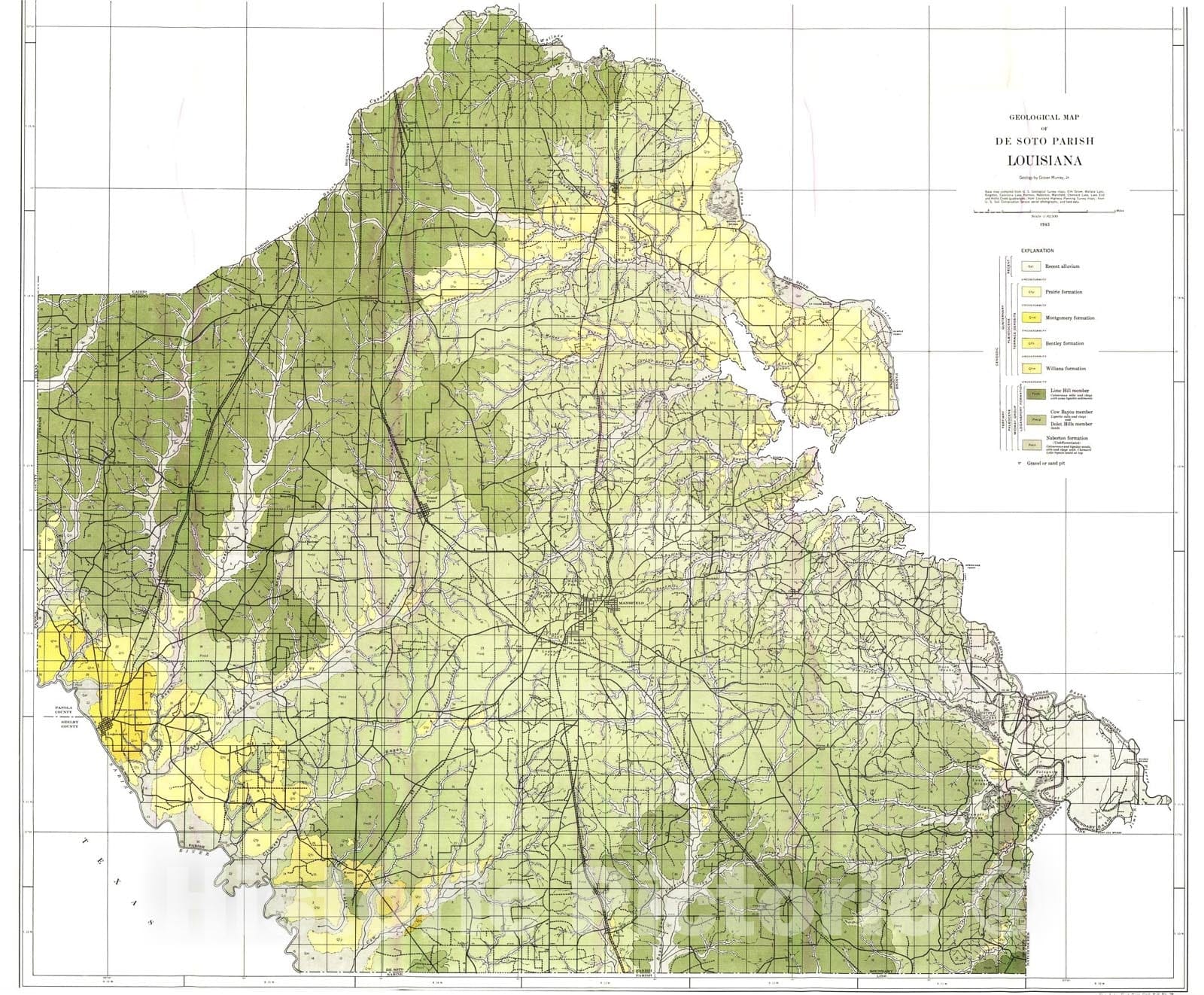 Map : Geology of De Soto and Red River Parishes, 1948 Cartography Wall Art :