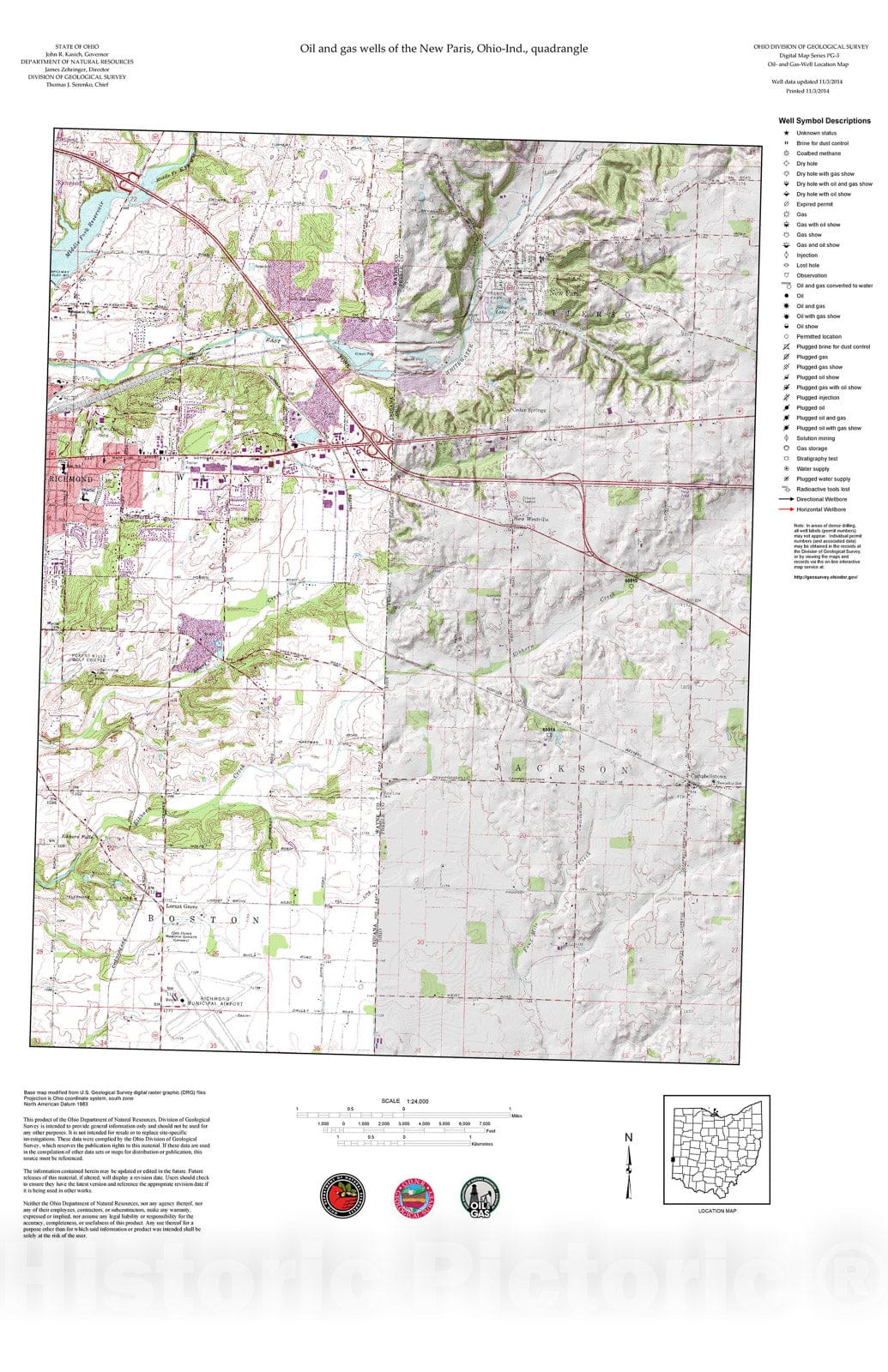 Map : Oil and gas wells of the New Paris quadrangle [Revised bi-weekly], 2006 Cartography Wall Art :
