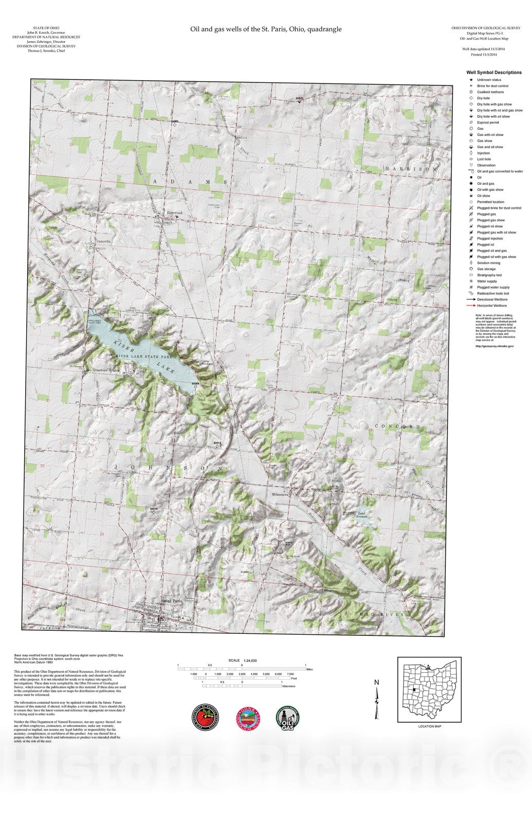 Map : Oil and gas wells of the St. Paris quadrangle [Revised bi-weekly], 2006 Cartography Wall Art :