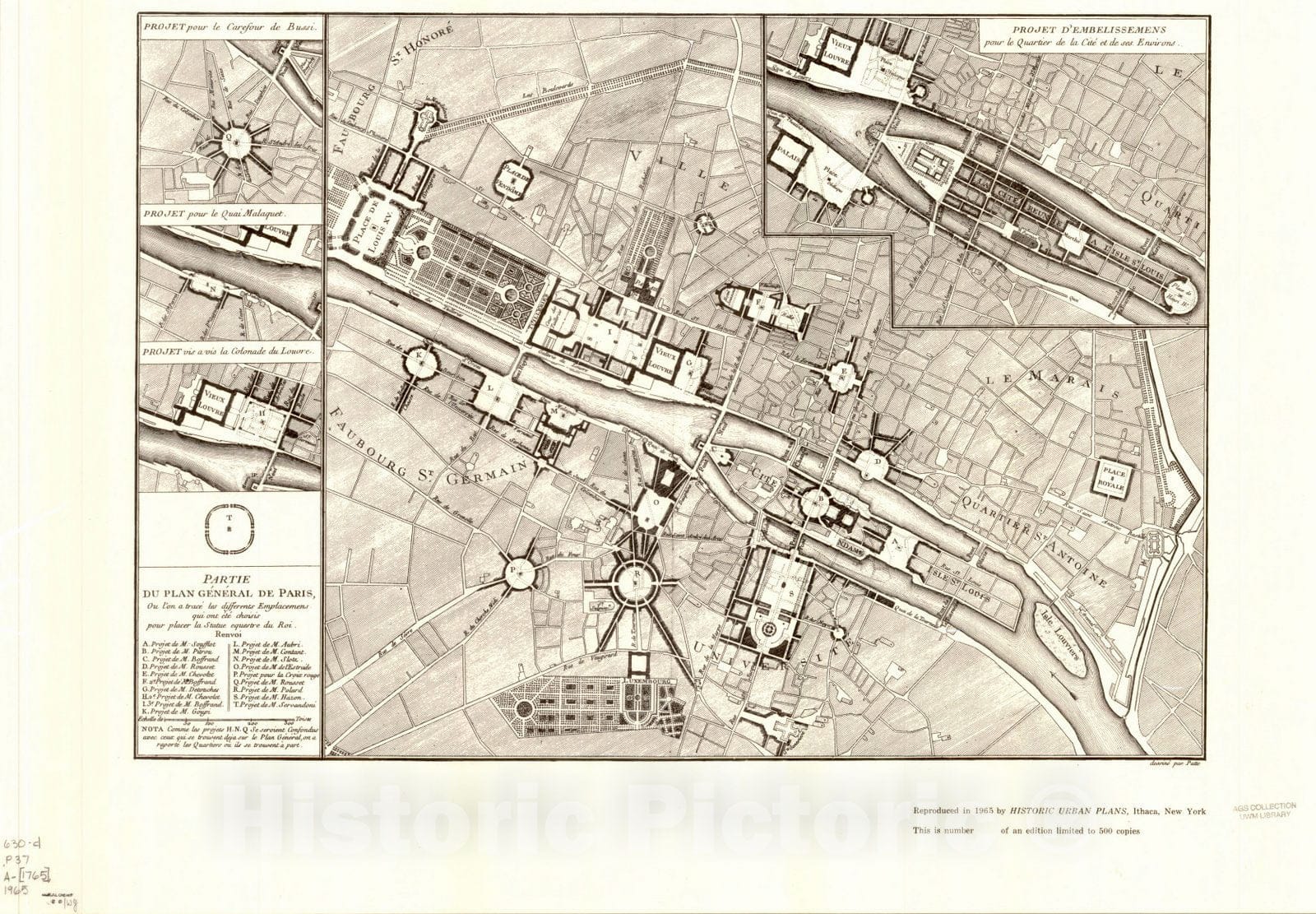 Map : Paris, France 1765 1965, Partie du plan general de Paris : ou l'on a trace les differents emplacemens qui ont ete choisis pour placer la statue equestre du roi