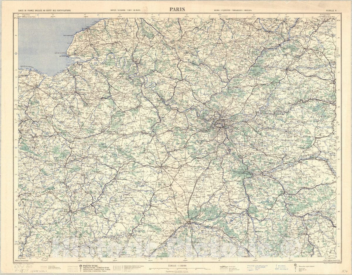 Map : Paris, France 1874, Carte de France dressee au depot des Fortifications, Paris feuille V , Antique Vintage Reproduction