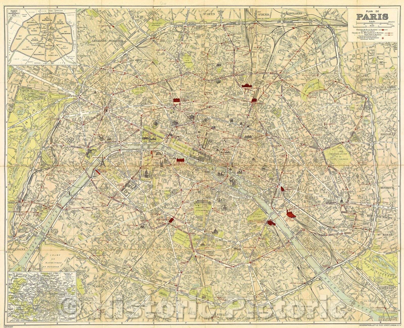Historic Map : Plan de Paris, 1923 , Vintage Wall Art