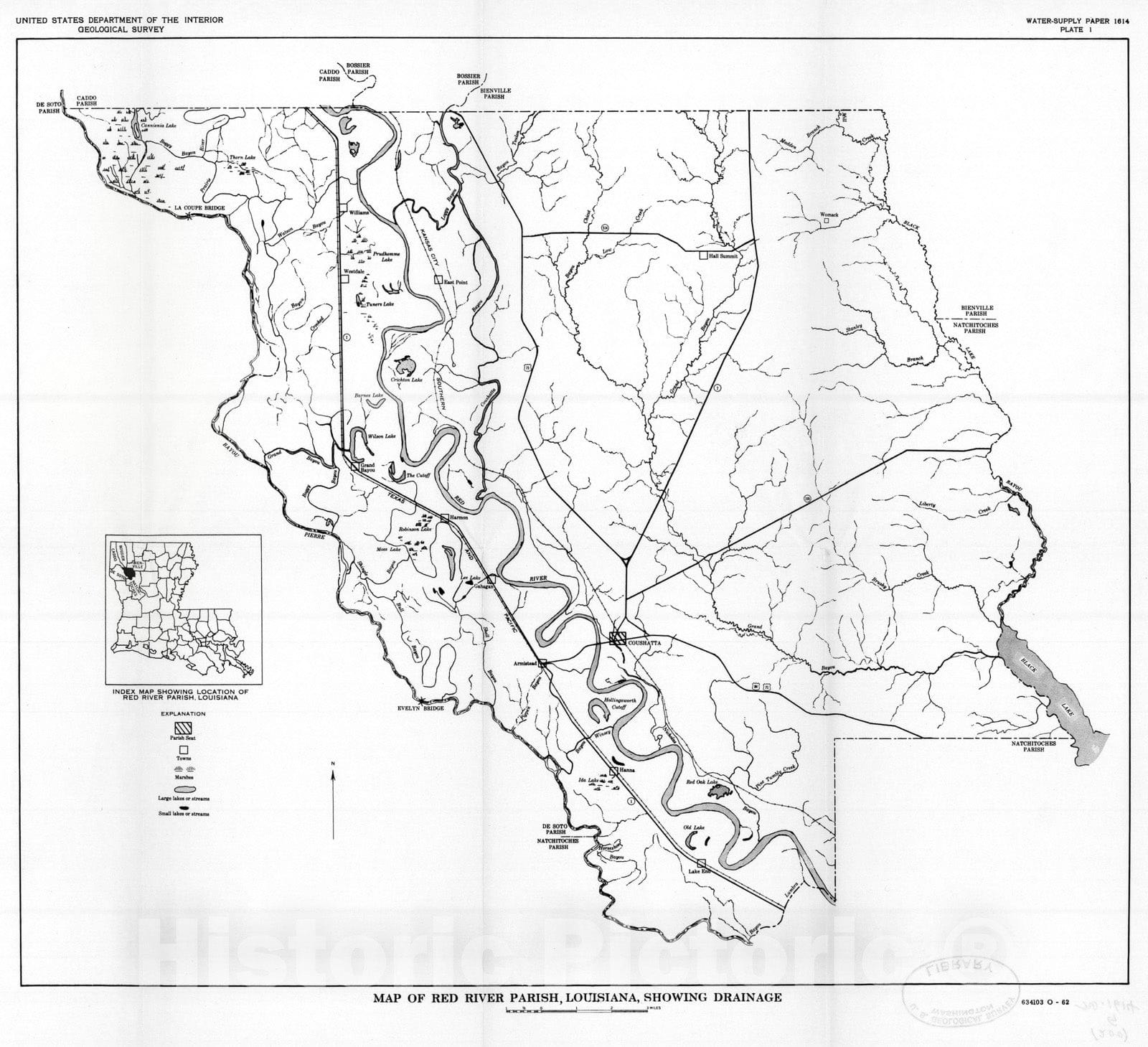 Map : Water resources of Red River Parish, Louisiana, 1962 Cartography Wall Art :