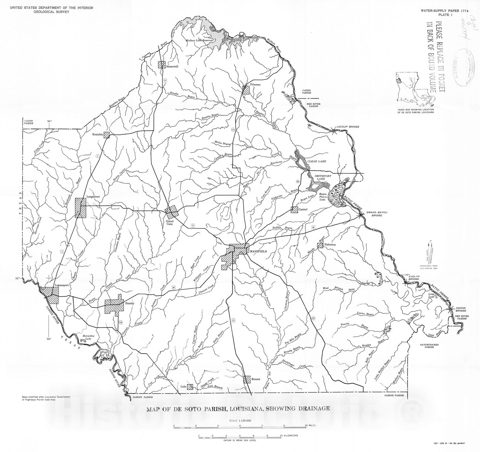 Map : Water resources of the De Soto Parish, Louisiana, 1964 Cartography Wall Art :