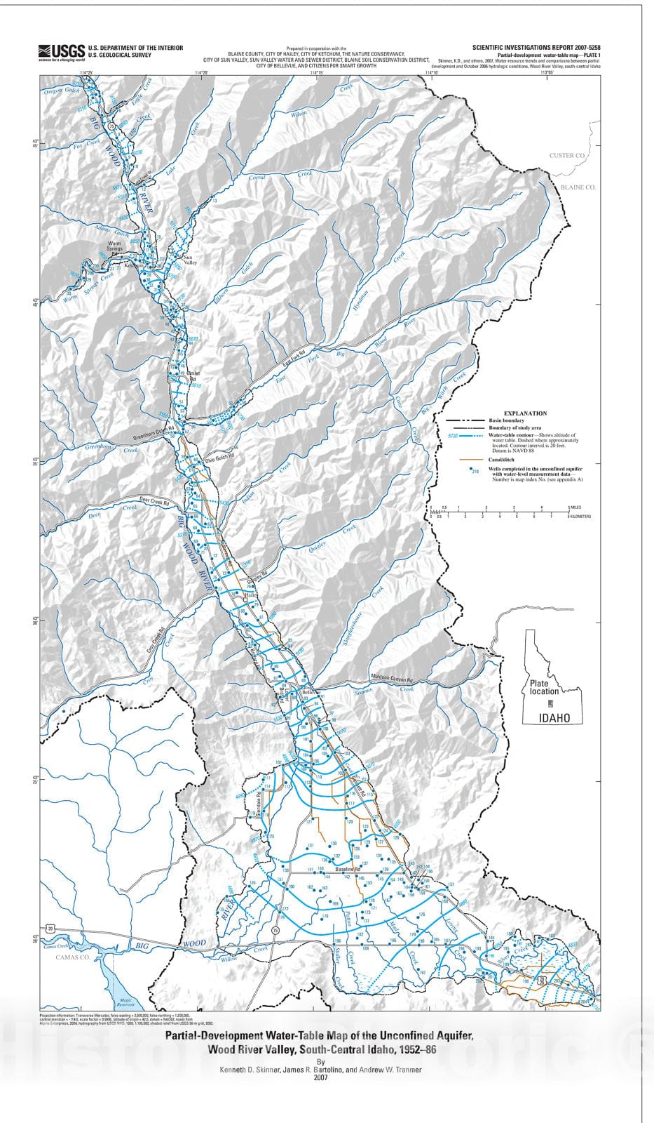 Map : Water-resources trends and comparisons between partial-development and October 2006 hydrologic conditions, Wood River Valley, south-central Idaho, 2007 Cartography Wall Art :
