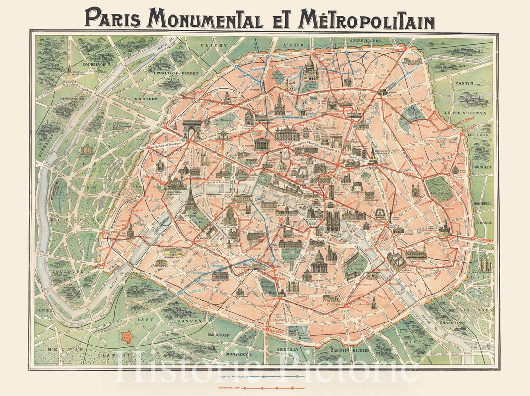 Historic Map : Paris Monumental et Metropolitan, c1920, Robelin, Vintage Wall Art