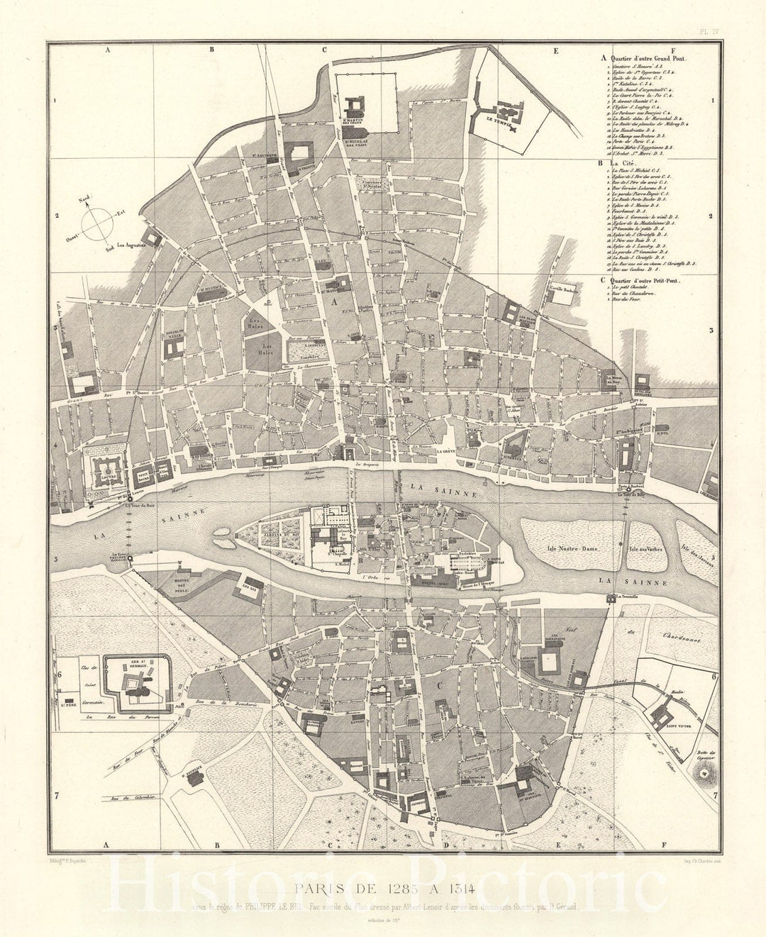 Historic Map : Pl. IV. Paris de 1285 a 1314., 1900, Vintage Wall Decor