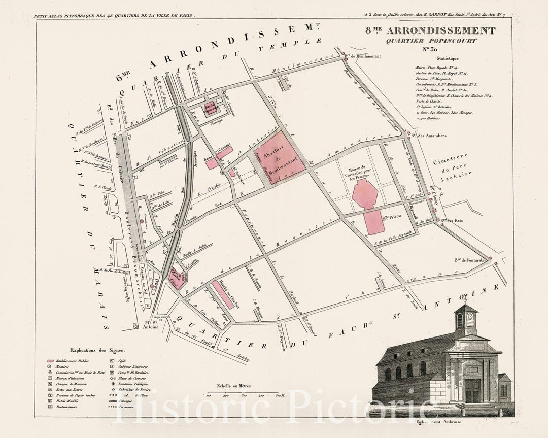 Historic Map : Paris eight Me. Arrondissement : Quartier Popincourt. No. 30, 1eight34, Vintage Wall Decor