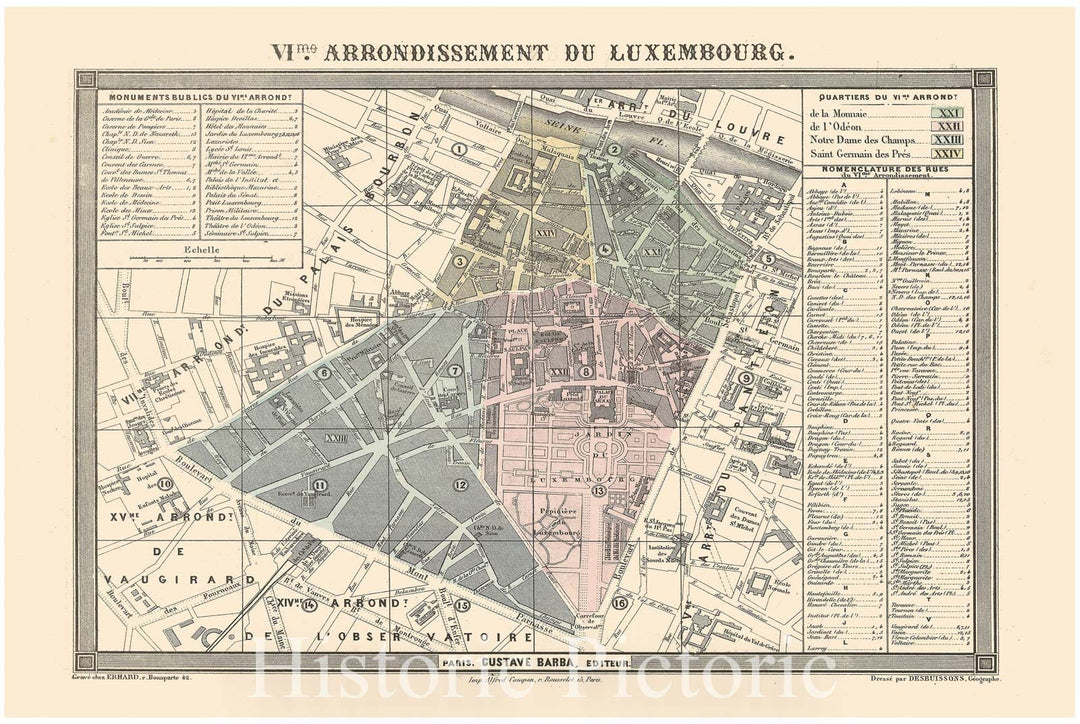 Historic Map : Europe, Paris 1860 6th Arrondissement , Vintage Wall Art