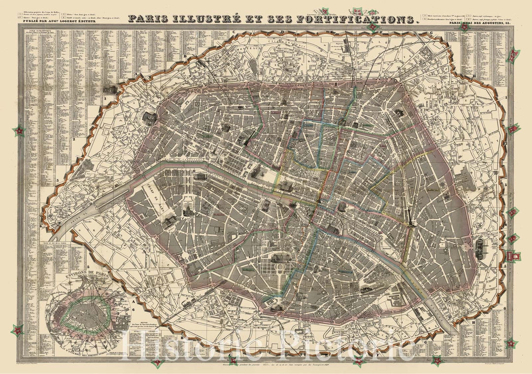 Map : Paris, France 1853, Paris illustre? et ses fortifications, Antique Vintage Reproduction