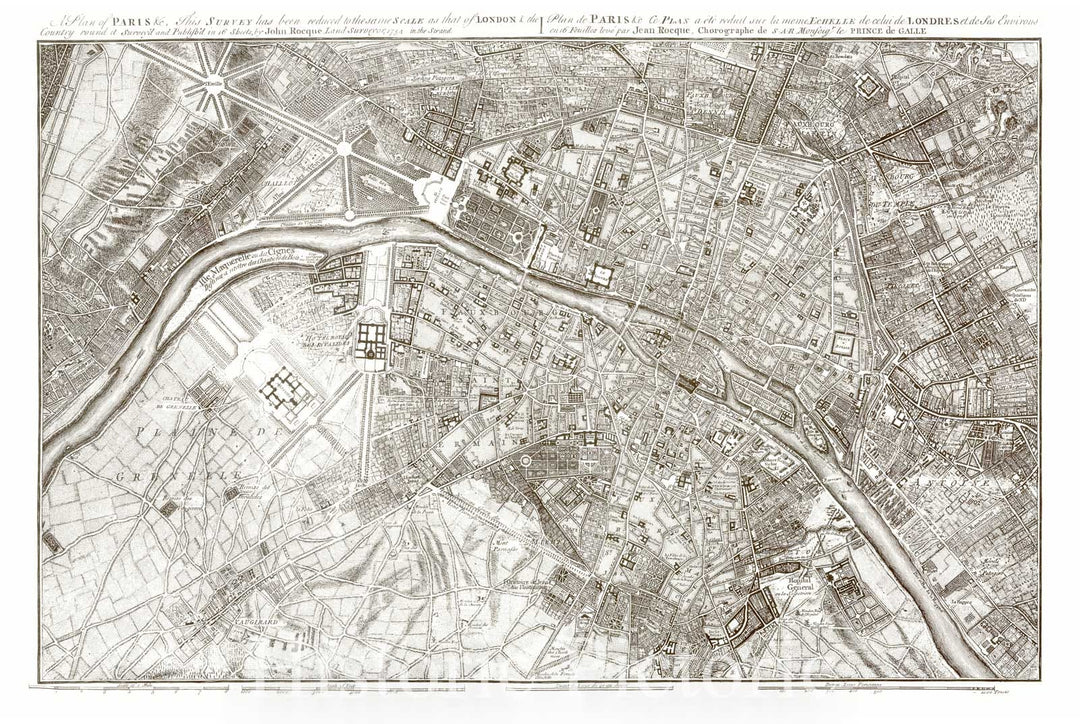 Map : Plan de Paris 1, Le Plan de Louis Bretez dit Plan de Turgot , Antique Vintage Reproduction