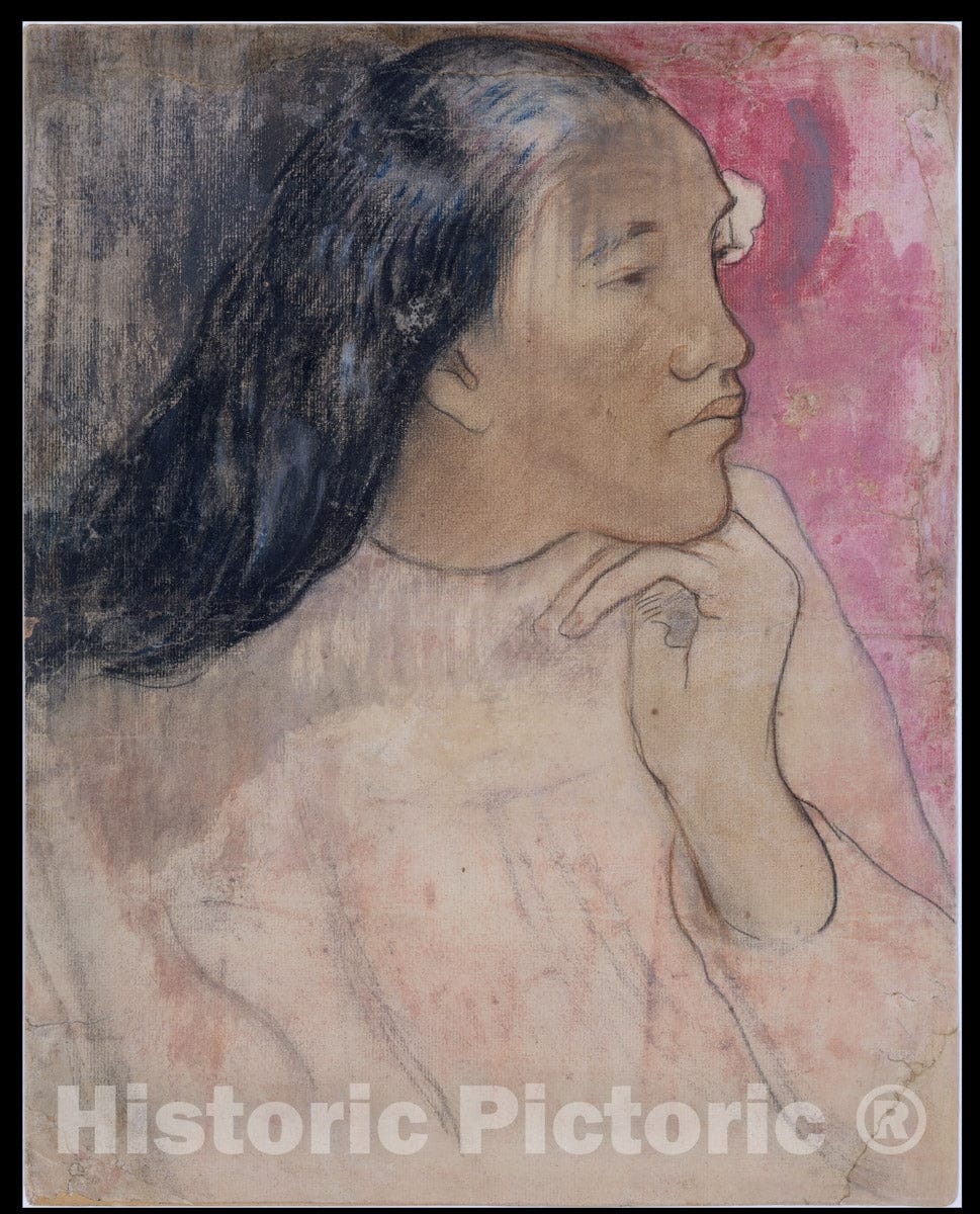 A Tahitian Woman with a Flower in Her Hair - French, Paris 1848-1903 Atuona, Hiva Oa, Marquesas Islands - Artist Nationality: French - Original Medium, Materials or Technique: Charcoal, pastel, and wash