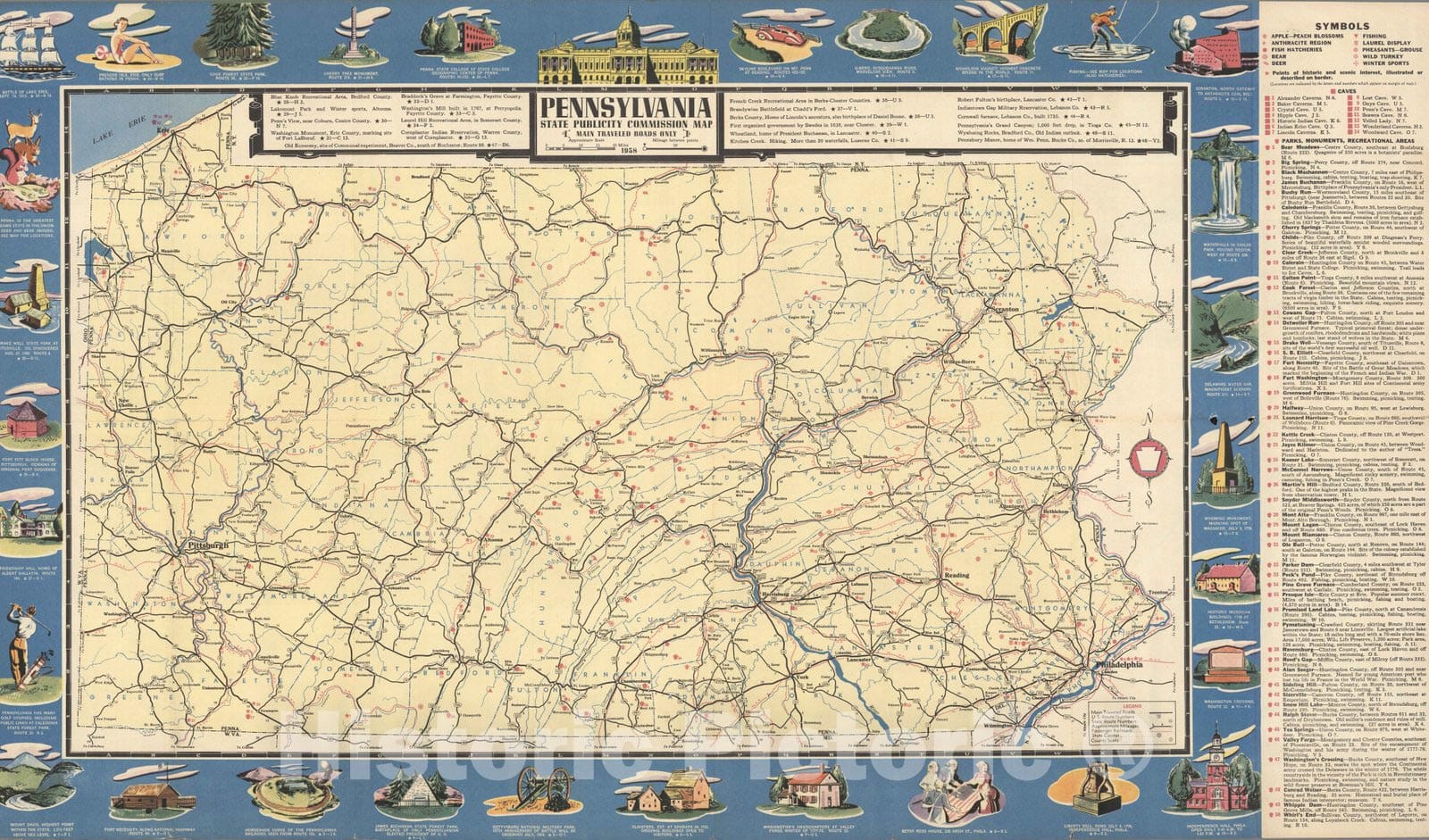 Historic Map : Pennsylvania State Publicity Commission map, 1938 - Vintage Wall Art