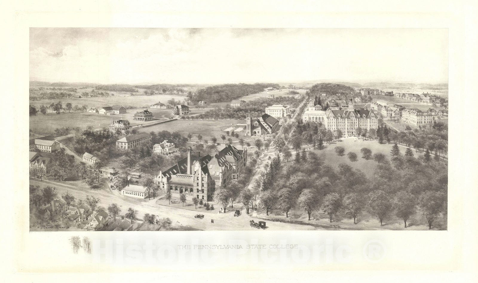 Historic Map : Pennsylvania State University, Richard Rummell, 1910, Vintage Wall Art