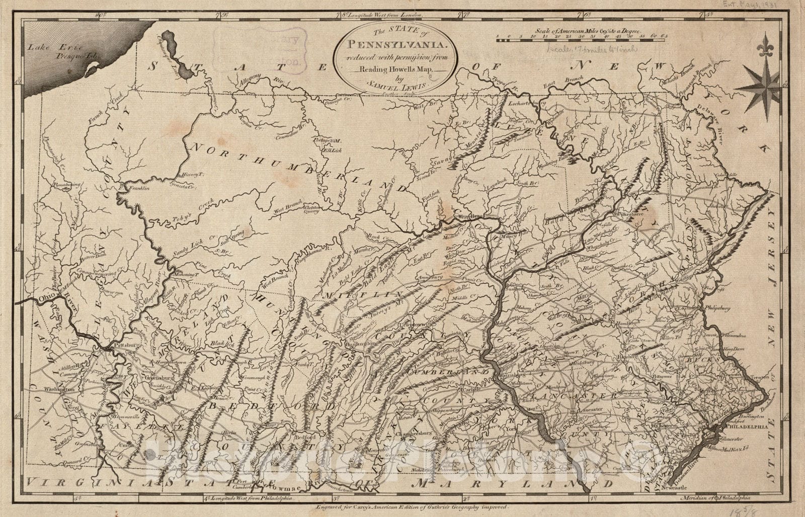 • Historical Map, 1795 The State of Pennsylvania, Vintage Wall Art
