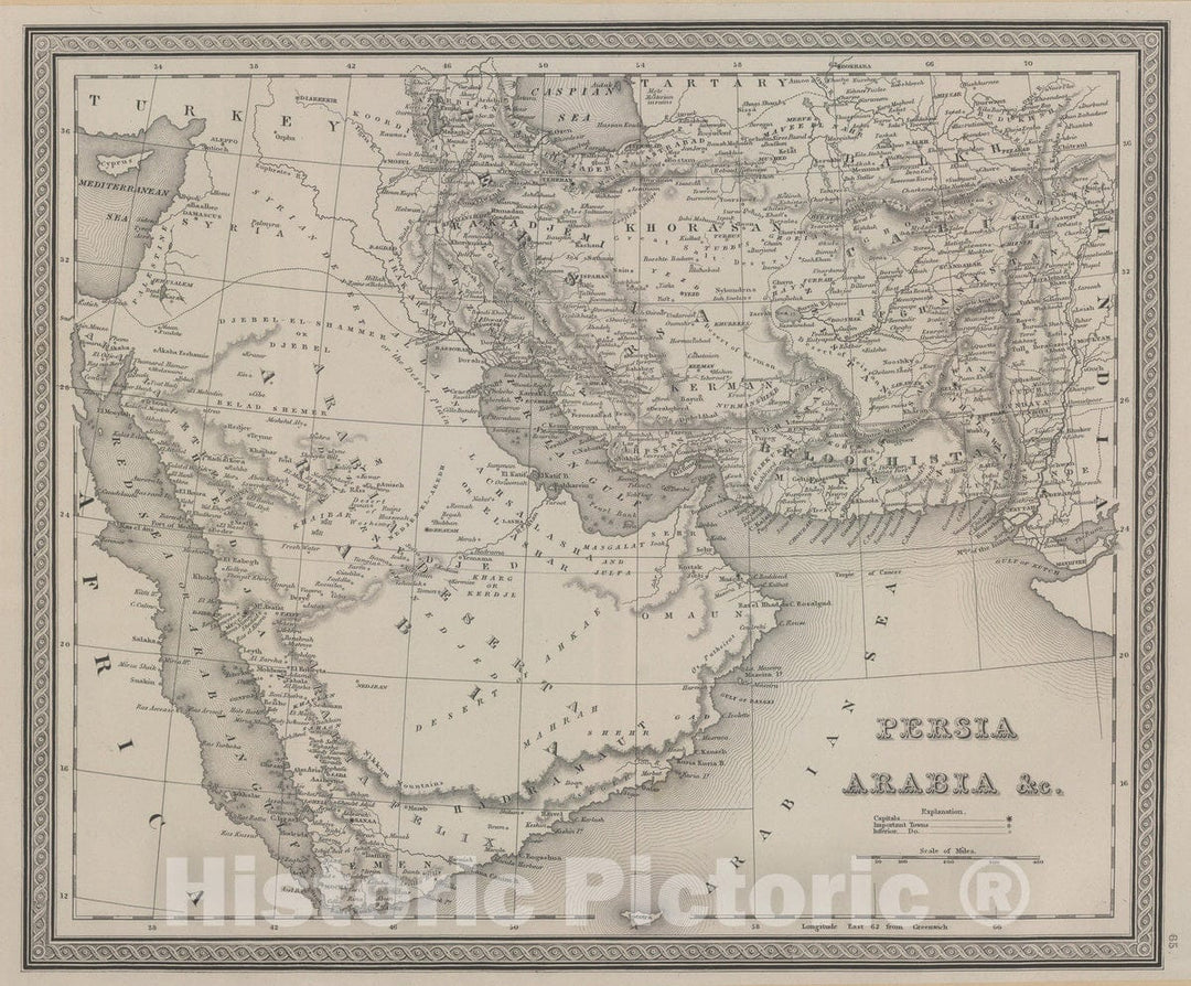 Historic Map : 1848 Persia and Arabia. - Vintage Wall Art