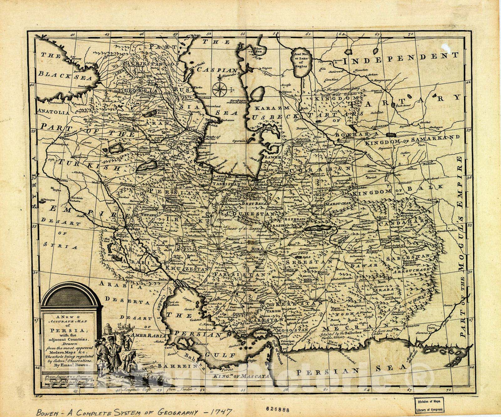 • Historic 1747 Map - A New & Accurate map of Persia, with The Adjacent Countries : Drawn from The Most Approved Modern maps &c, The Whole Being Regulated by astronl. observations