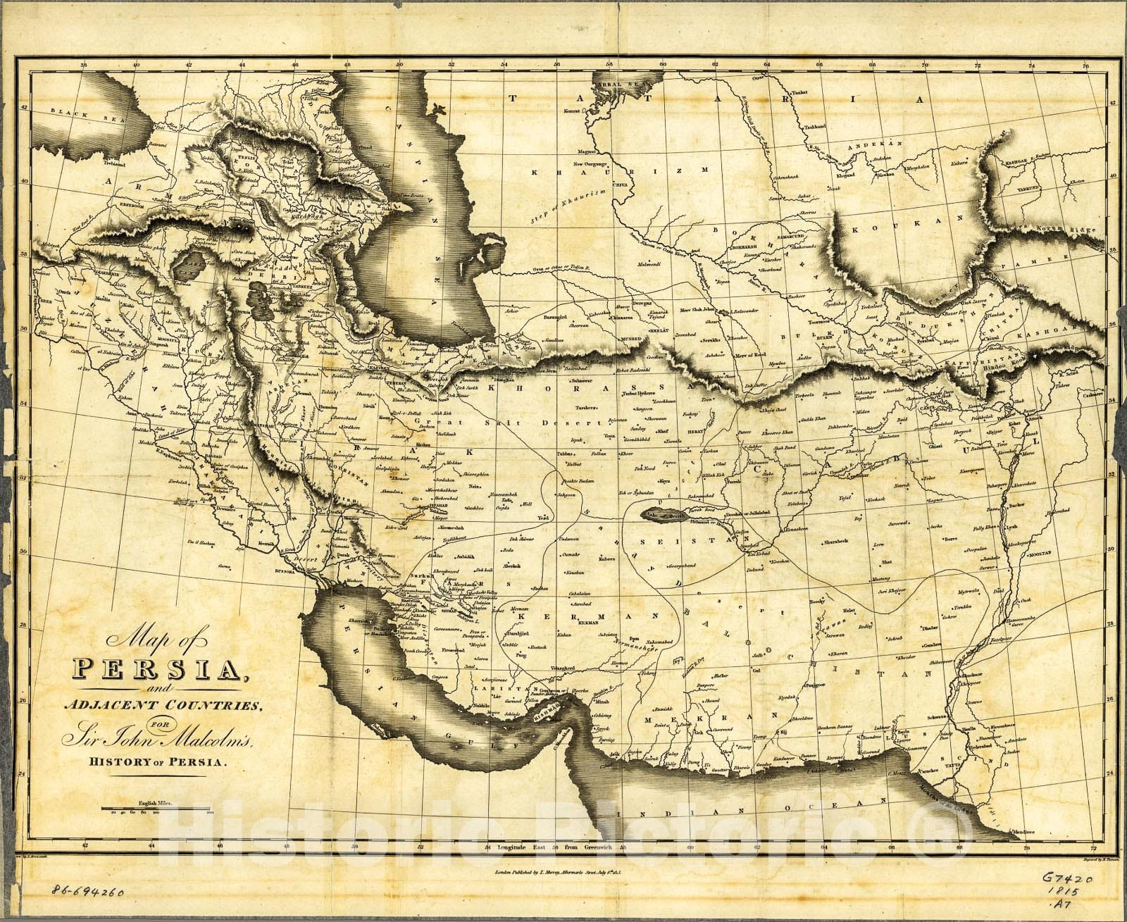 Historic 1815 Map - Map of Persia and Adjacent Countries, for Sir John Malcolm's History of Persia