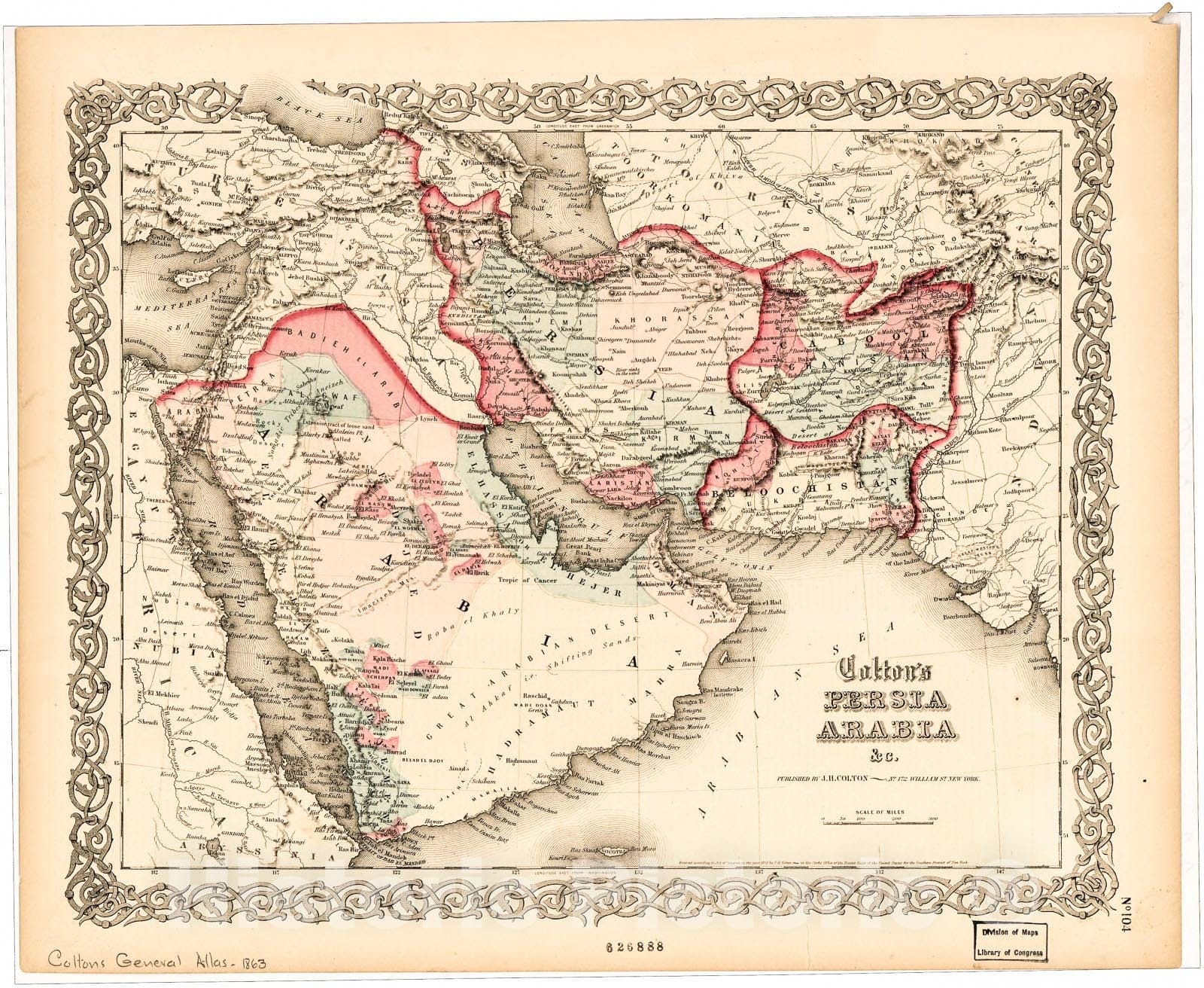 • .Historic 1863 Map - Colton's Persia Arabia & co.
