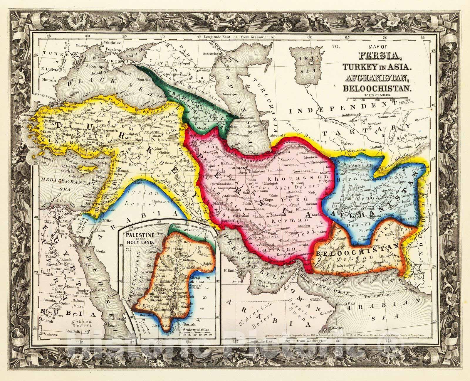 • Historic Map : 1860 Map of Persia, Turkey In Asia. Afghanistan, Beloochistan. - Vintage Wall Art