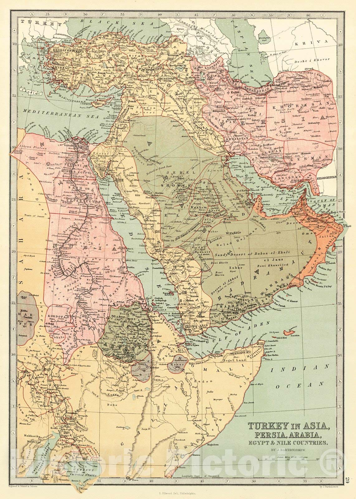 Vintage Map | 1873 Turkey in Asia, Persia, Arabia, Egypt and Nile Countries | Bartholomew, John