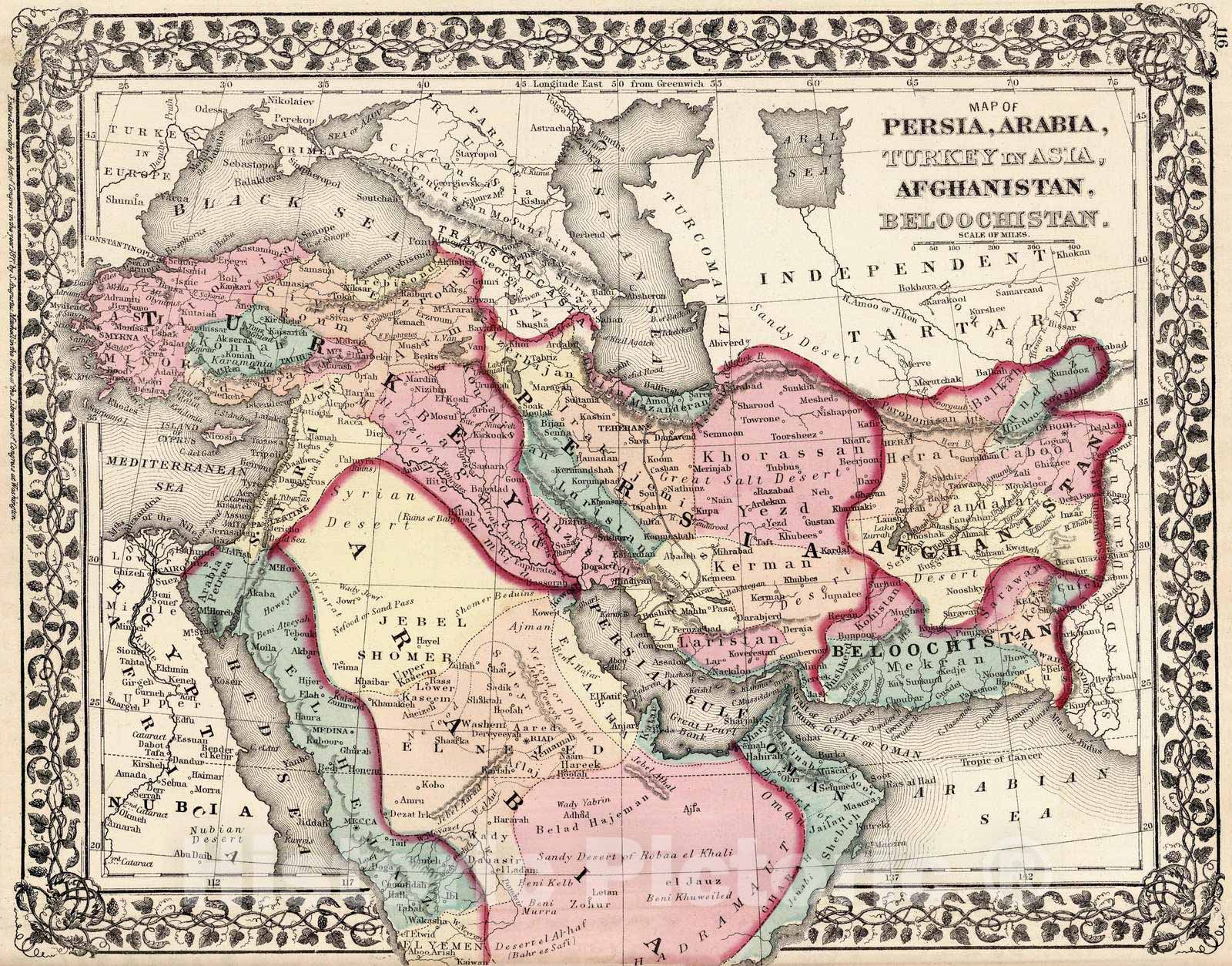 Historic Map : 1877 Map of Persia, Arabia, Turkey in Asia, Afghanistan, Beloochistan - Vintage Wall Art