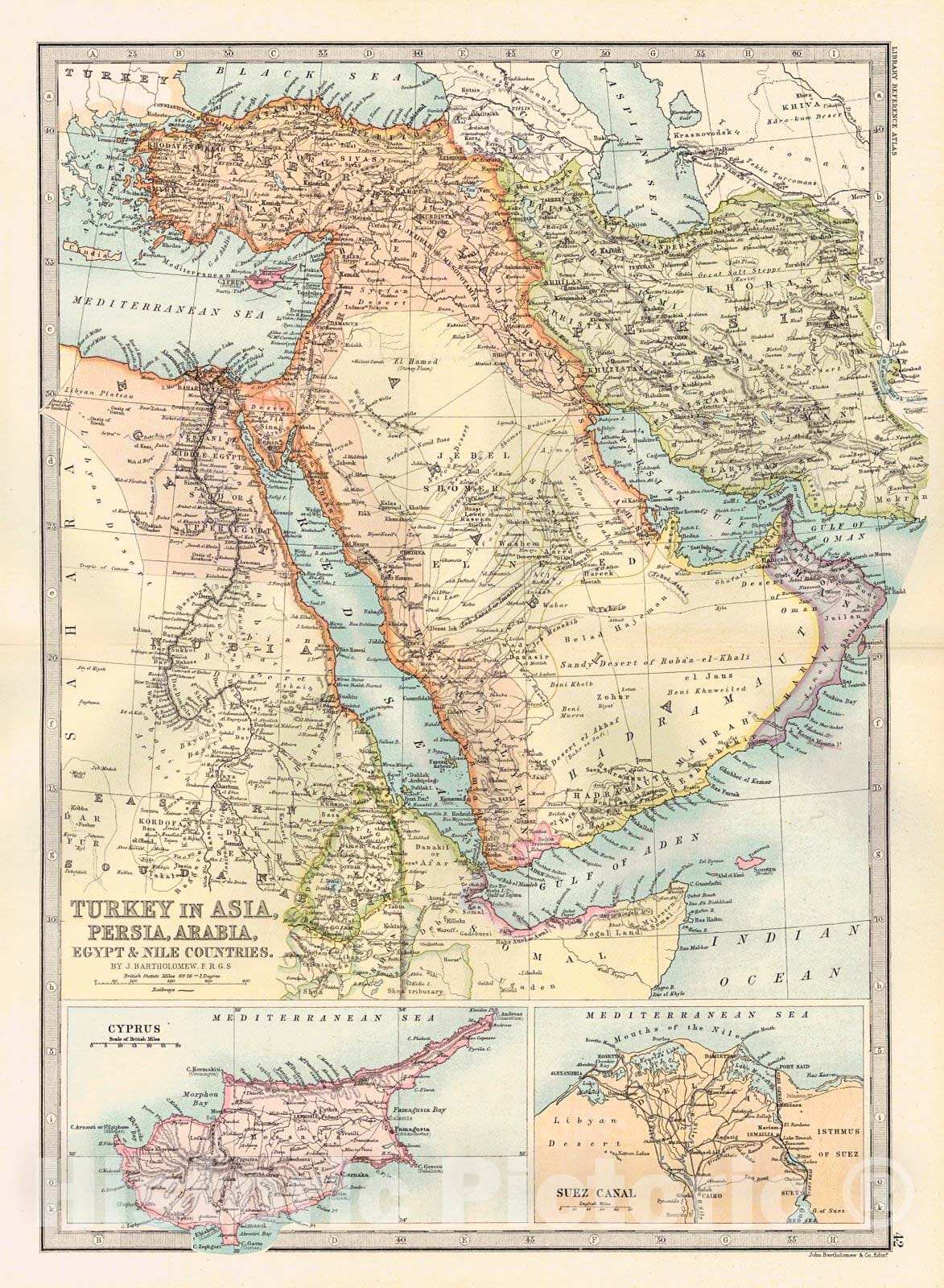 Vintage Map | 1879 Turkey in Asia, Persia, Arabia, Egypt & Nile Countries | Bartholomew, John