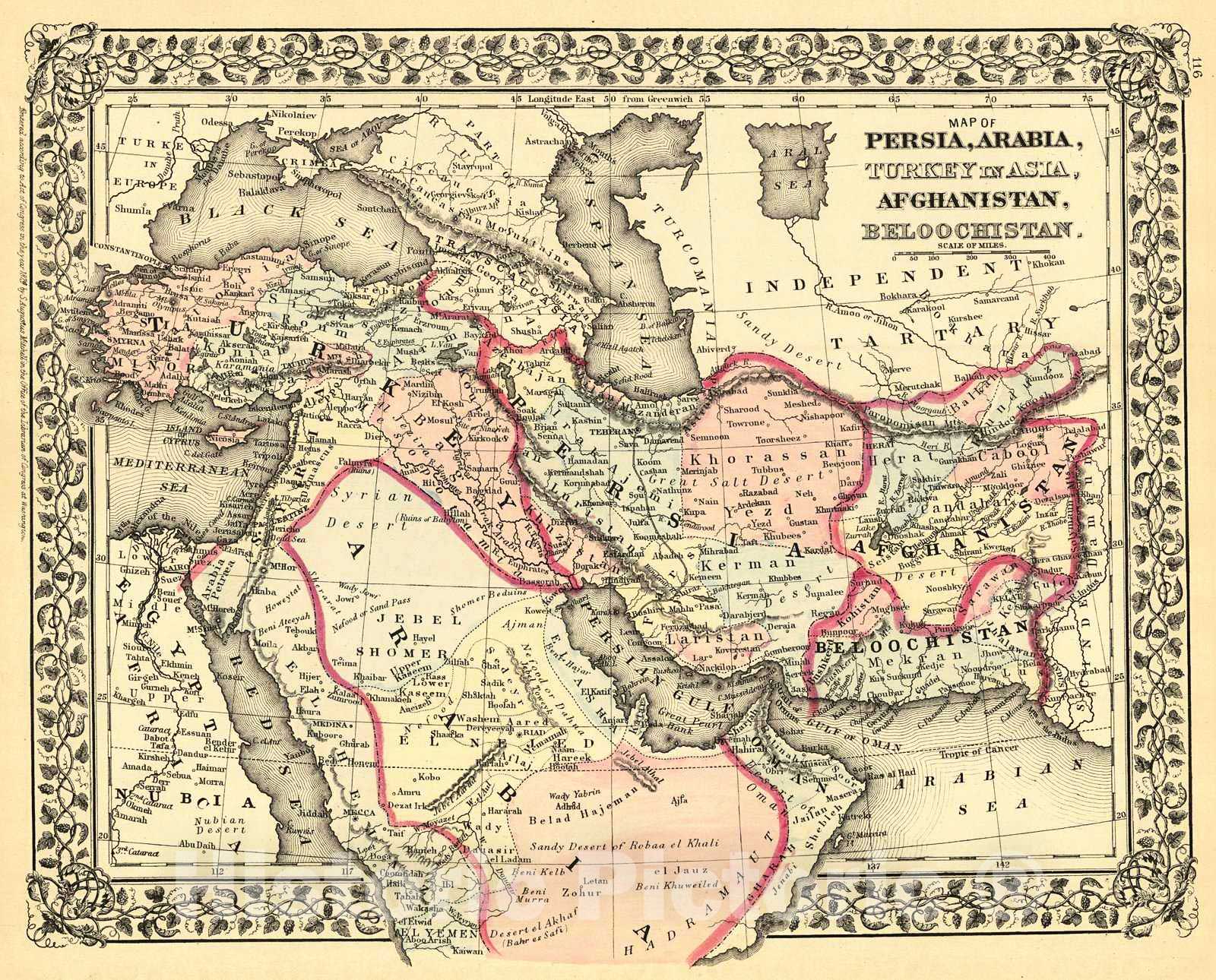 Historic Map : 1880 Map of Persia, Arabia, Turkey in Asia, Afghanistan and Beloochistan : Vintage Wall Art