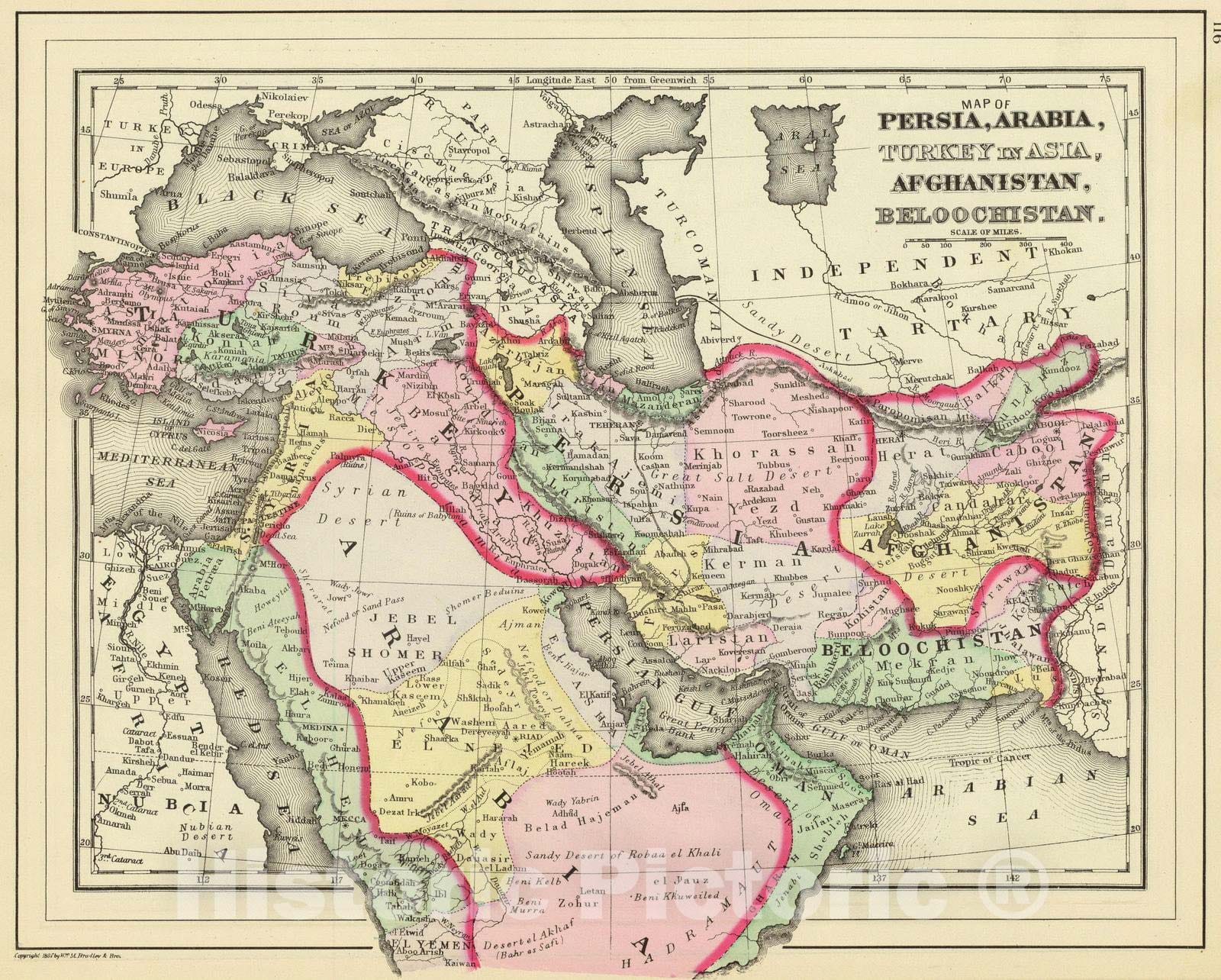 • .Historic Map : 1890 Persia, Arabia, Turkey, Afghanistan, Beloochistan. - Vintage Wall Art