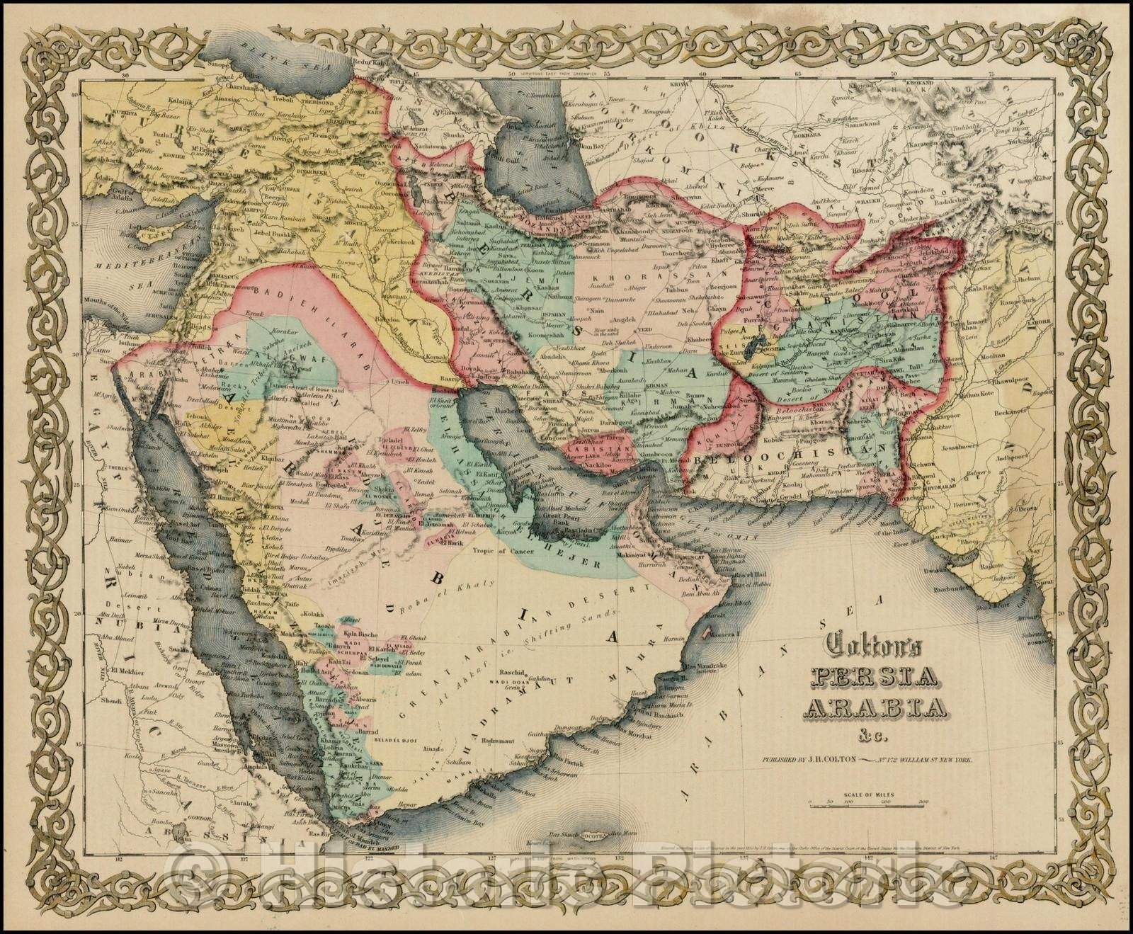 Historic Map - Colton's Persia Arabia, 1855, Joseph Hutchins Colton - Vintage Wall Art