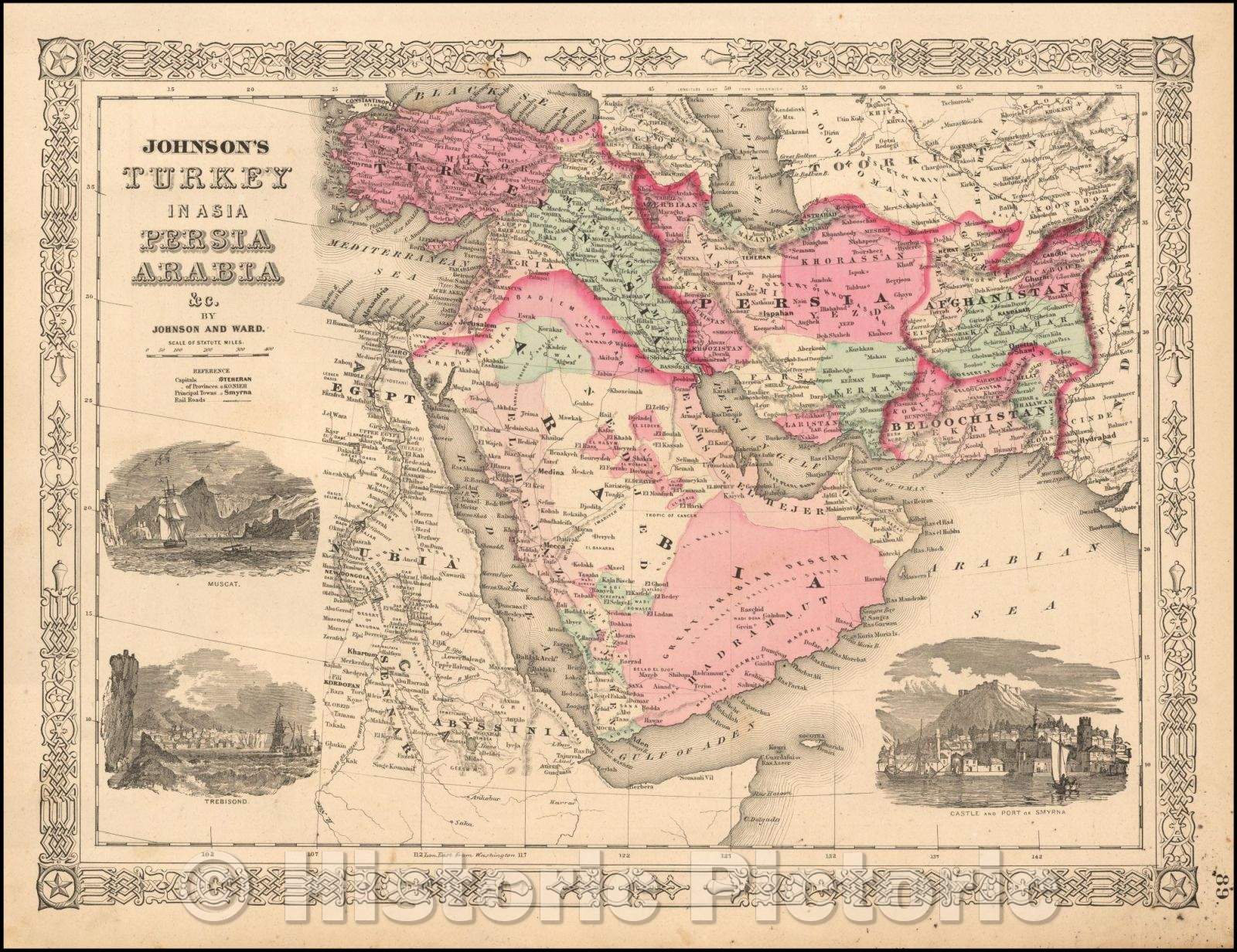Historic Map - Johnson's Turkey in Asia, Persia, Arabia, 1863, Benjamin P Ward - Vintage Wall Art