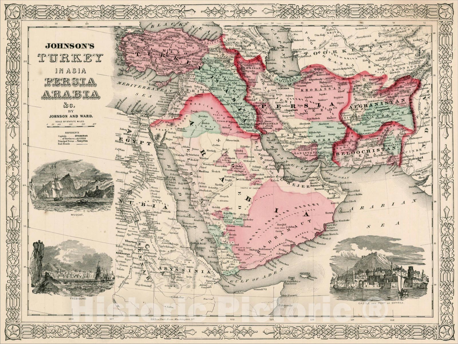 Historic Map : Johnson's Turkey in Asia, Persia, Arabia, &c., 1864, , Vintage Wall Art