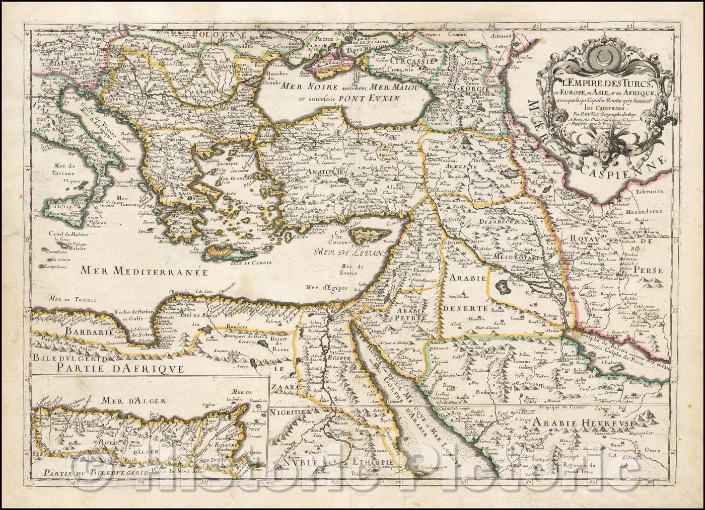 Historic Map - L'Empire Des Turcs, en Europe, en Asie et en Afrique, avec queles princ :: Ottoman Empire, Mediterreanean to Persia and Caspian Sea, 1670 - Vintage Wall Art