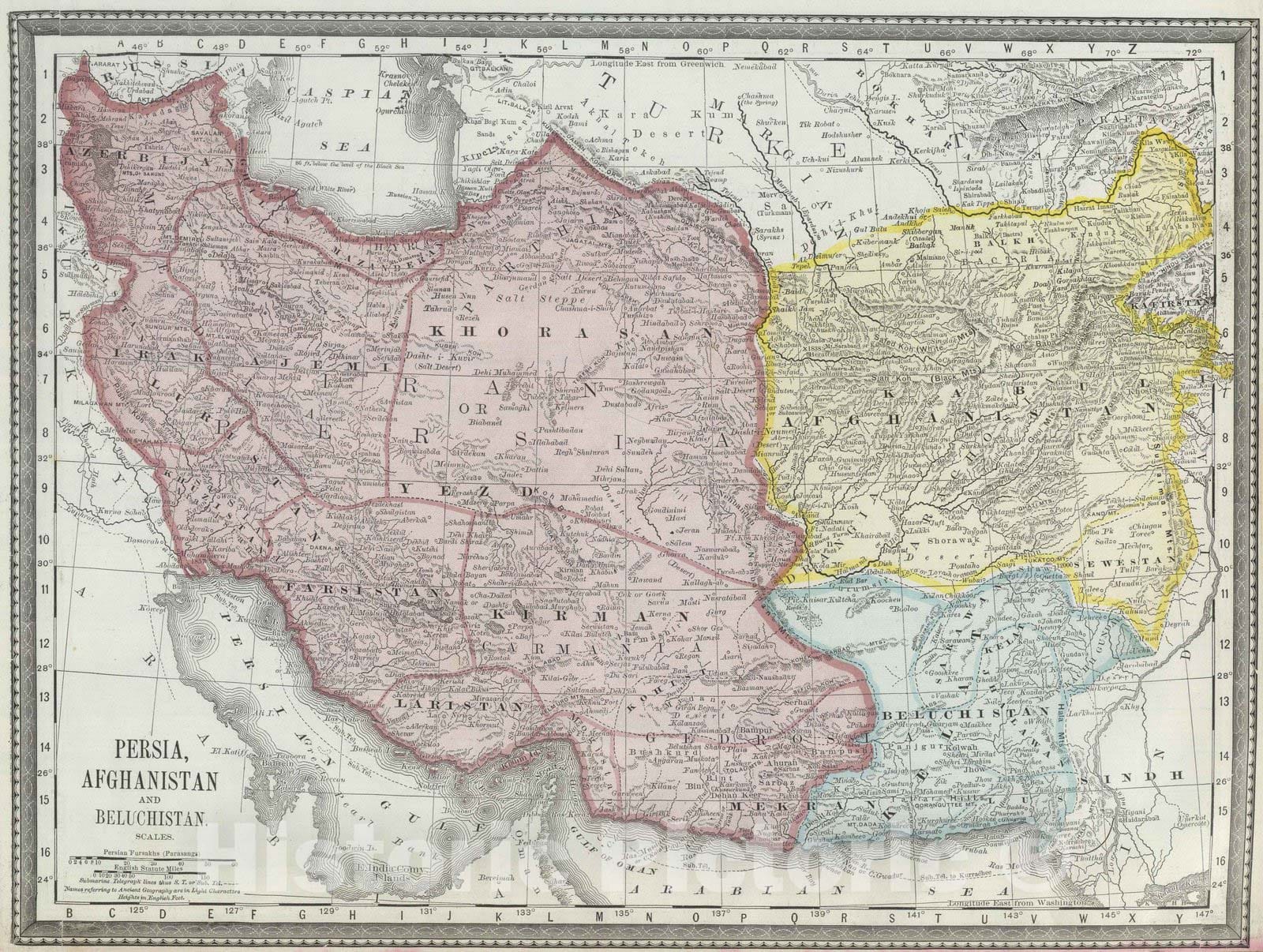 Historic Map : National Atlas - 1889 Persia, Afghanistan, and Beluchistan. - Vintage Wall Art