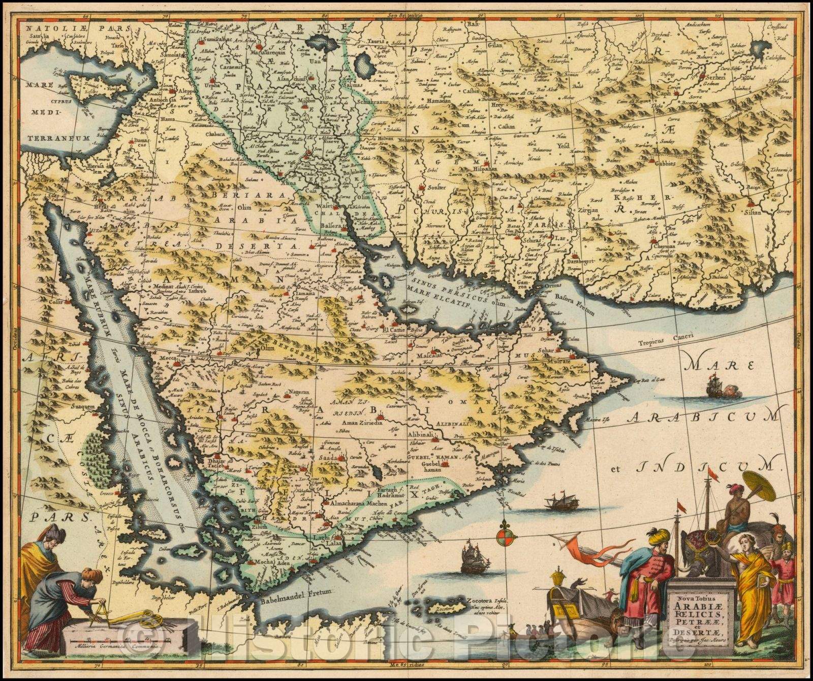 Nova Totius Arabiae Foelicis, Petraeae, et Desertae / Jacob Meurs Map of the Arabiana Peninsula, Red Sea Persian Empire, 1680, Jacob Meurs