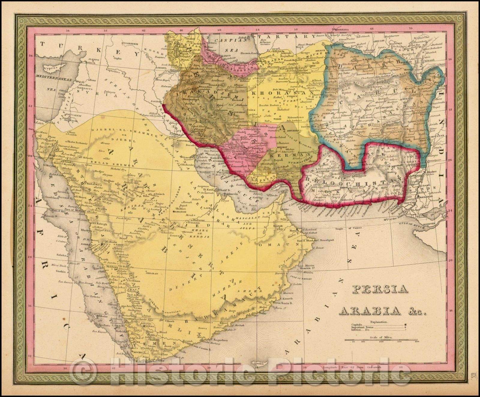 Historic Map - Persia Arabia, 1847, Samuel Augustus Mitchell - Vintage Wall Art