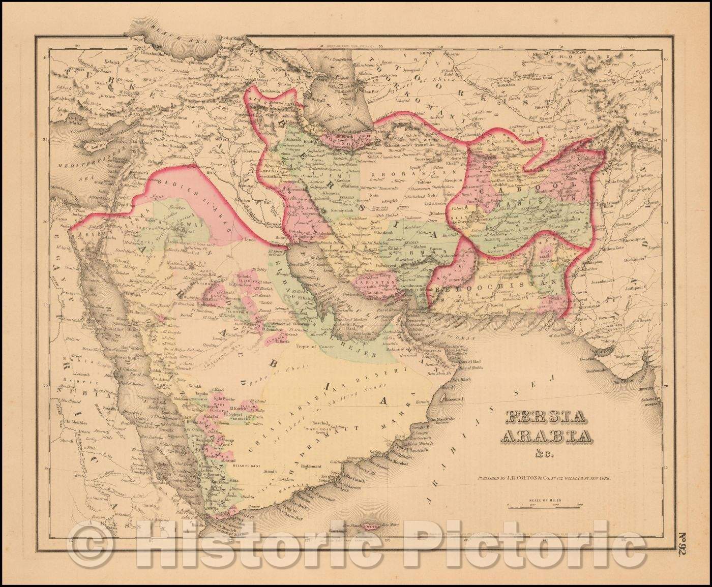 Historic Map - Persia Arabia, 1858, Joseph Hutchins Colton - Vintage Wall Art