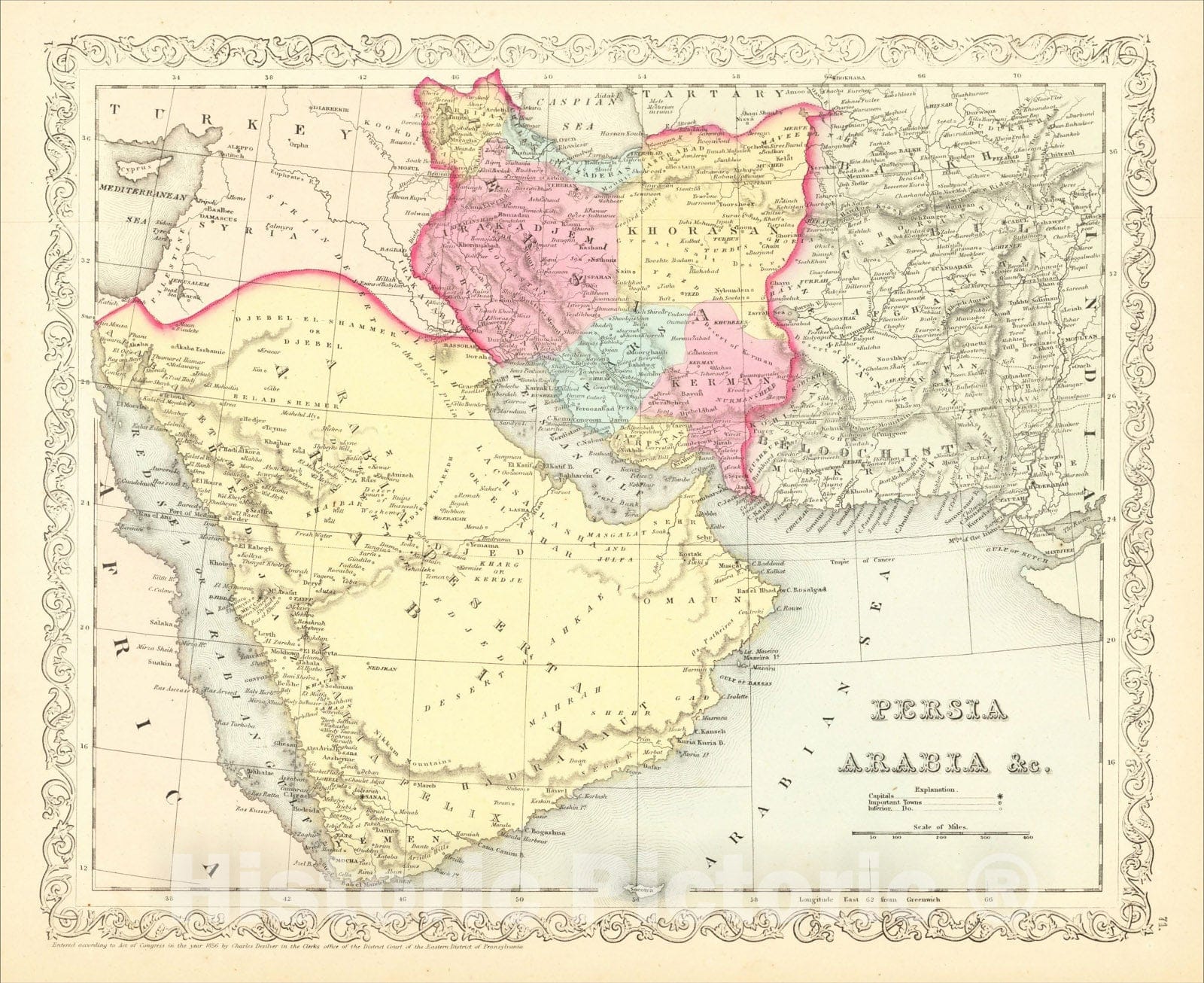 Historic Map : Persia Arabia andc., 1857, Charles Desilver, Vintage Wall Art