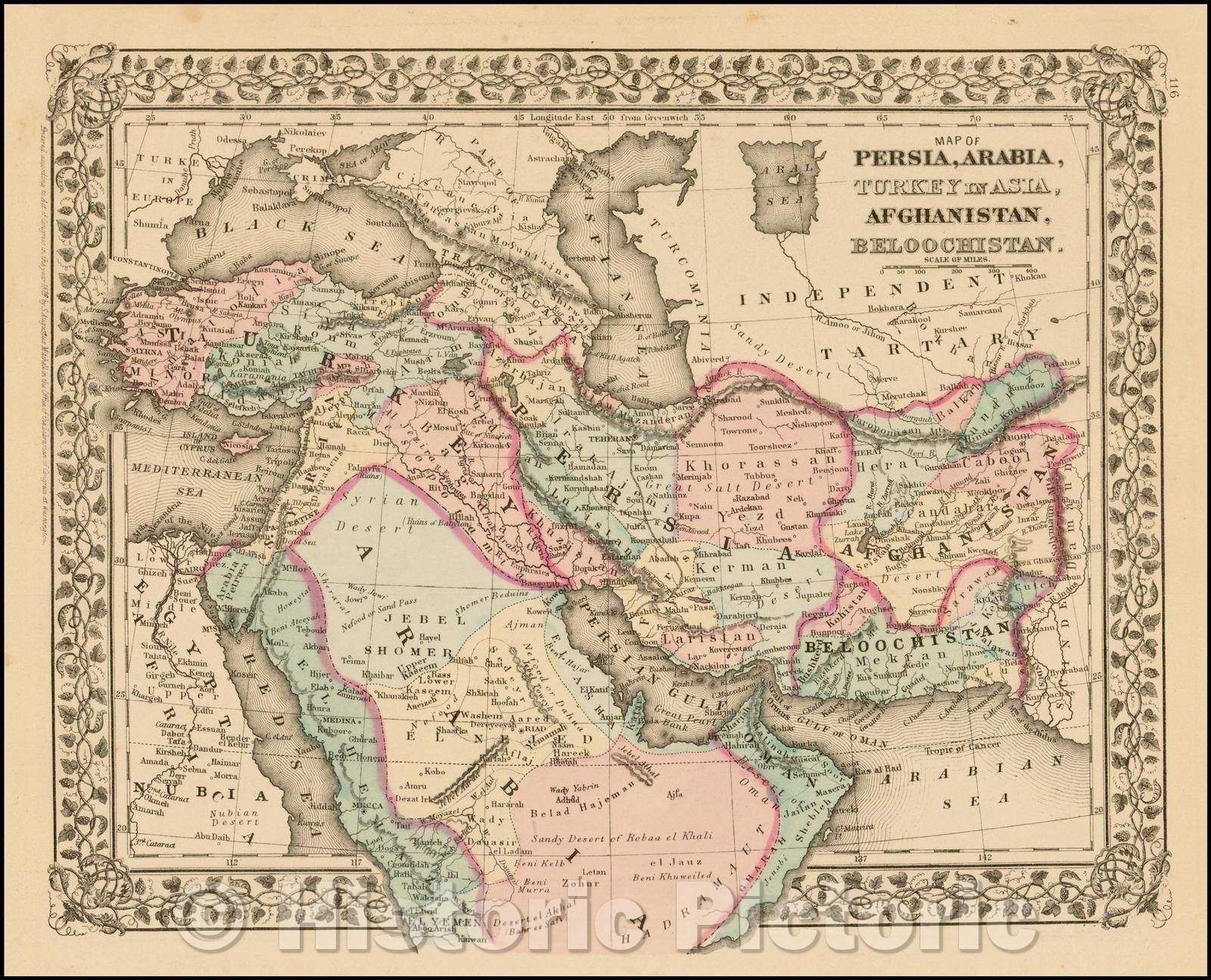 Historic Map - Map of Persia, Arabia, Turkey in Asia, Afghanistan, Beloochistan, 1870, Samuel Augustus Mitchell Jr. v2