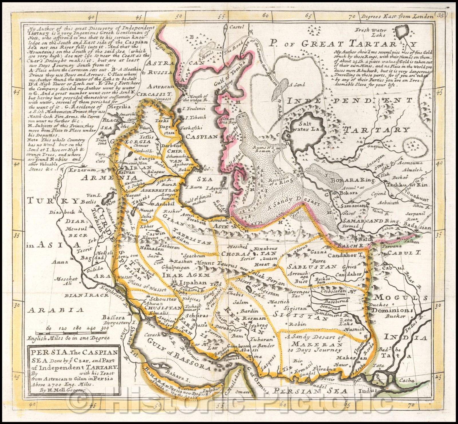 Historic Map - Persia, Caspian Sea, done, 1728, Herman Moll - Vintage Wall Art