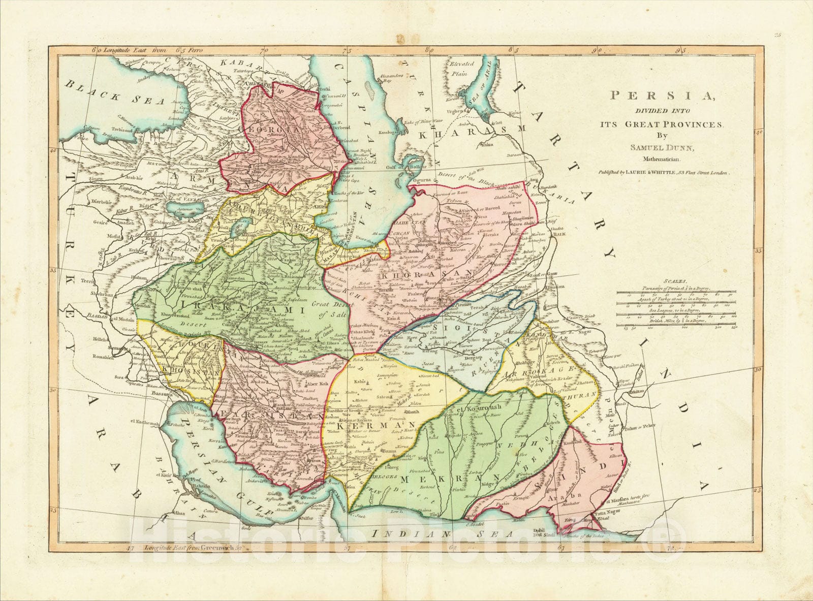 • .Historic Map : Persia Divided into its Great Provinces, 1794, Samuel Dunn, Vintage Wall Art