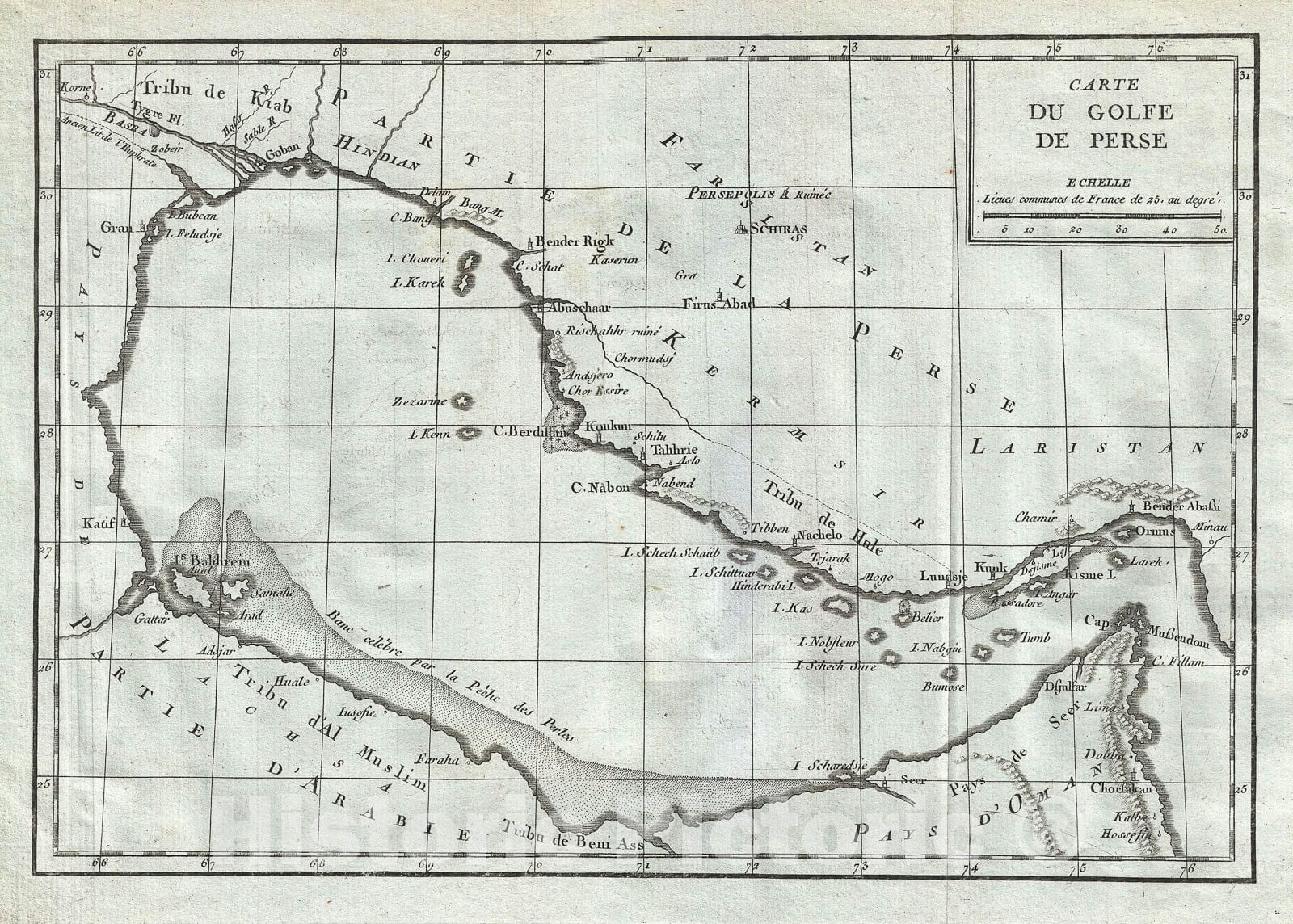 • .Historic Map : The Persian Gulf: Bahrain, Emirates, Dubai, Iran, Delisle de Sales, 1770, Vintage Wall Art