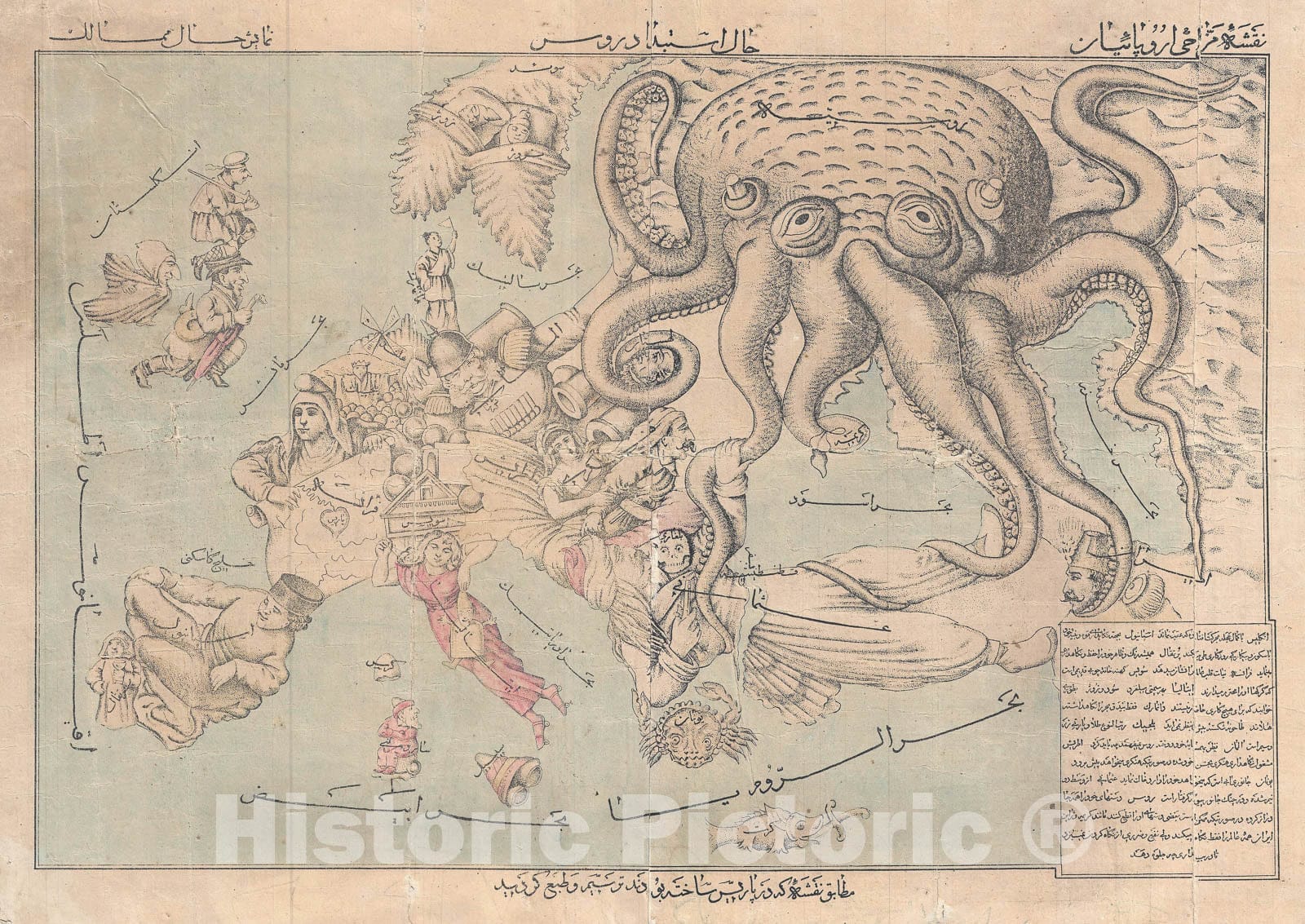 Persian Variant on Rose's Serio Comic Map of Europe "Octopus Map", 1880