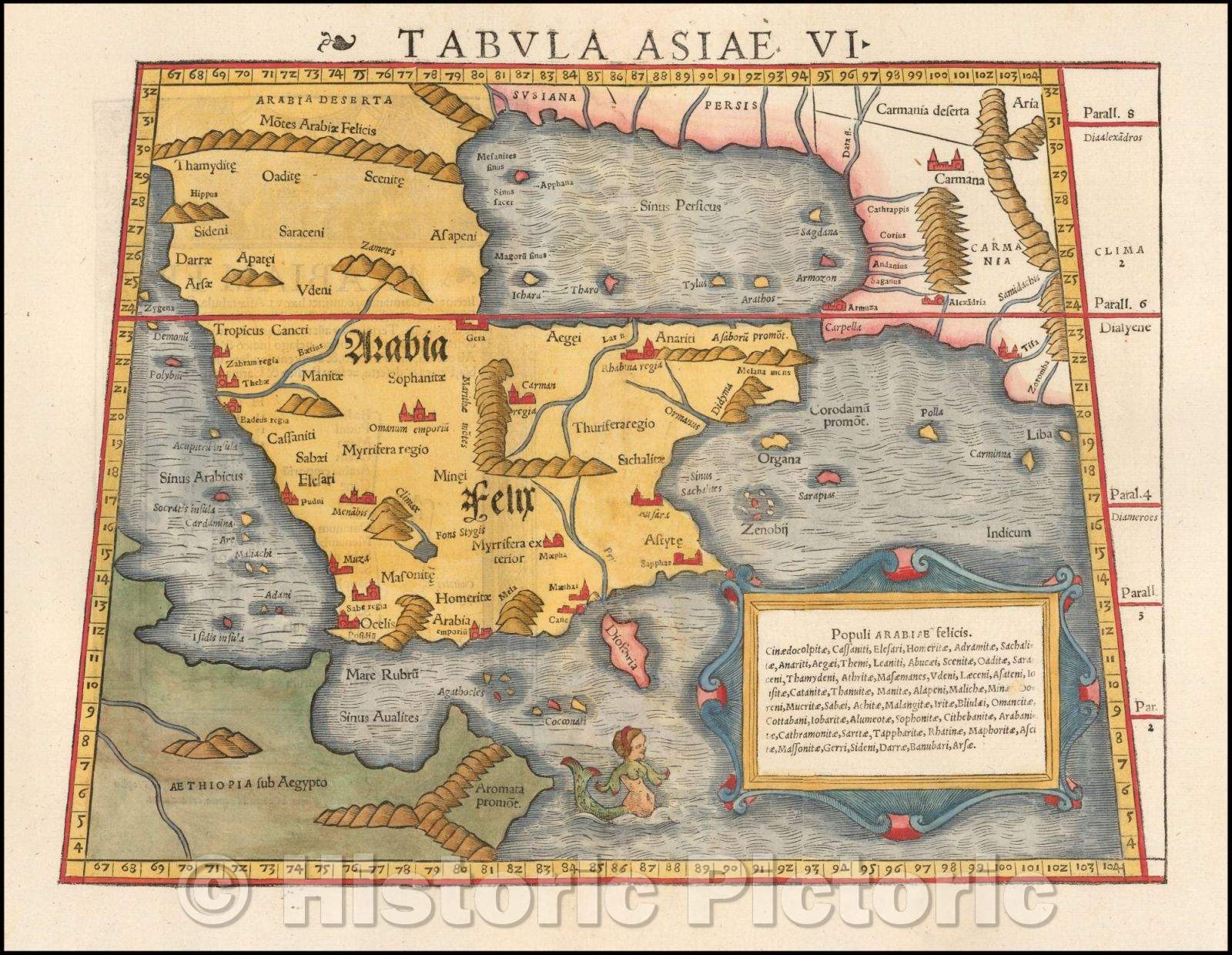 Historic Map - Tabula Asiae VI Arabia and Persian Gulf, 1545, Sebastian M?nster - Vintage Wall Art