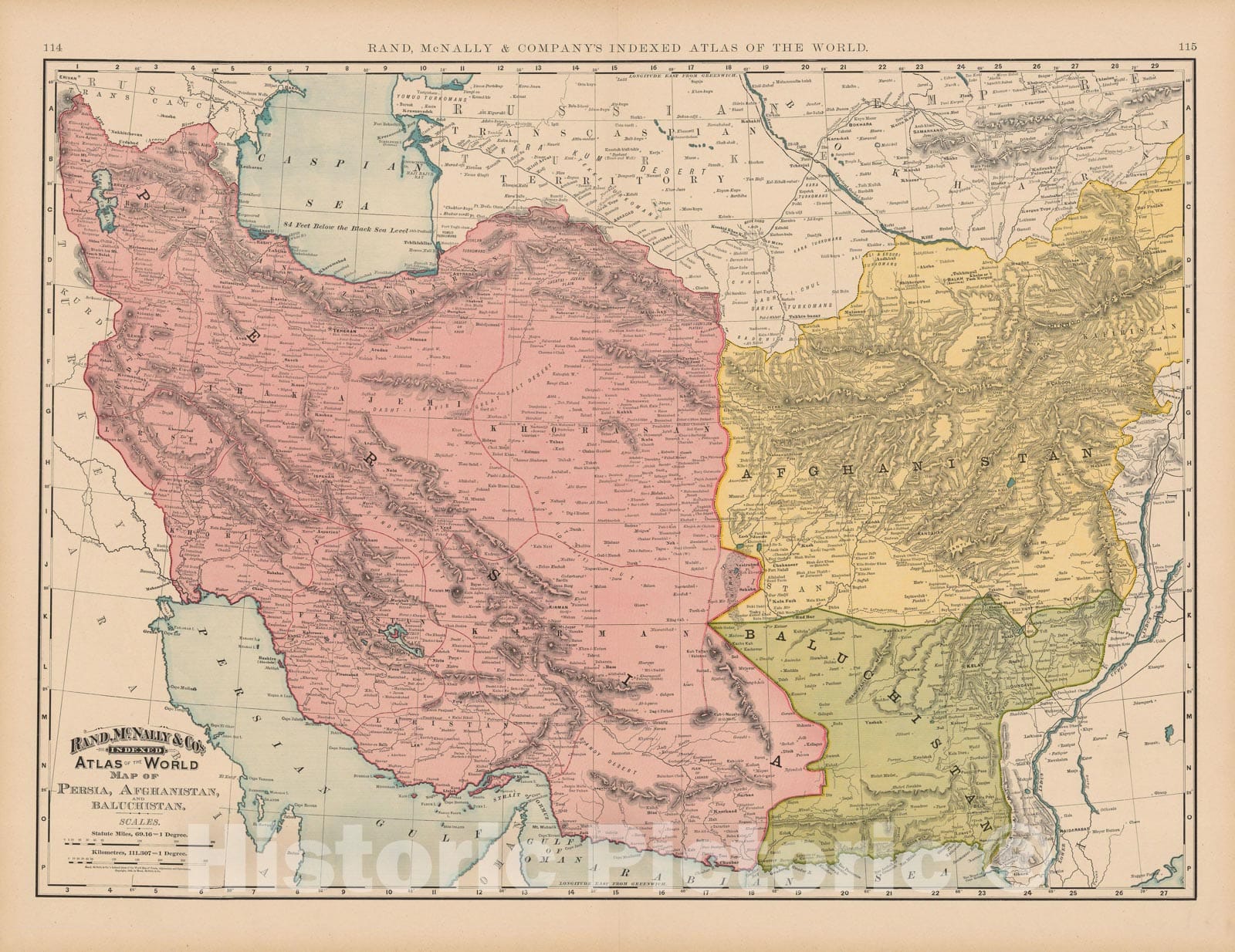 • .Historic Map : Baluchistan & Persia & Afghanistan 1892 , Rand McNally's Atlas World , Vintage Wall Art